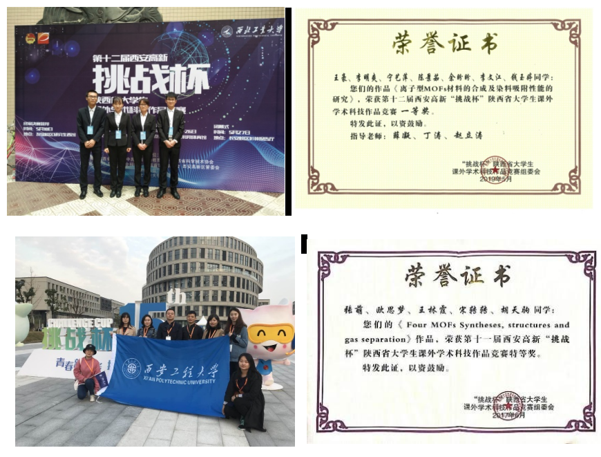 近年来,专业教师共主持完成纵横向科研项目100余项,其中国家级10余项,省部级20余项,经费1500余万元。发表核心期刊以上学术论文200余篇,其中SCI/EI论文100余篇。授权发明专利20余项,获陕西省科学技术奖6项,陕西省高等学校科学技术奖5项,中国纺织工业联合会科学技术进步奖2项,西安市科学技术奖1项;获得省级教学成果奖1项,中国纺织工业联合会教学成果奖2项;出版教材8部。