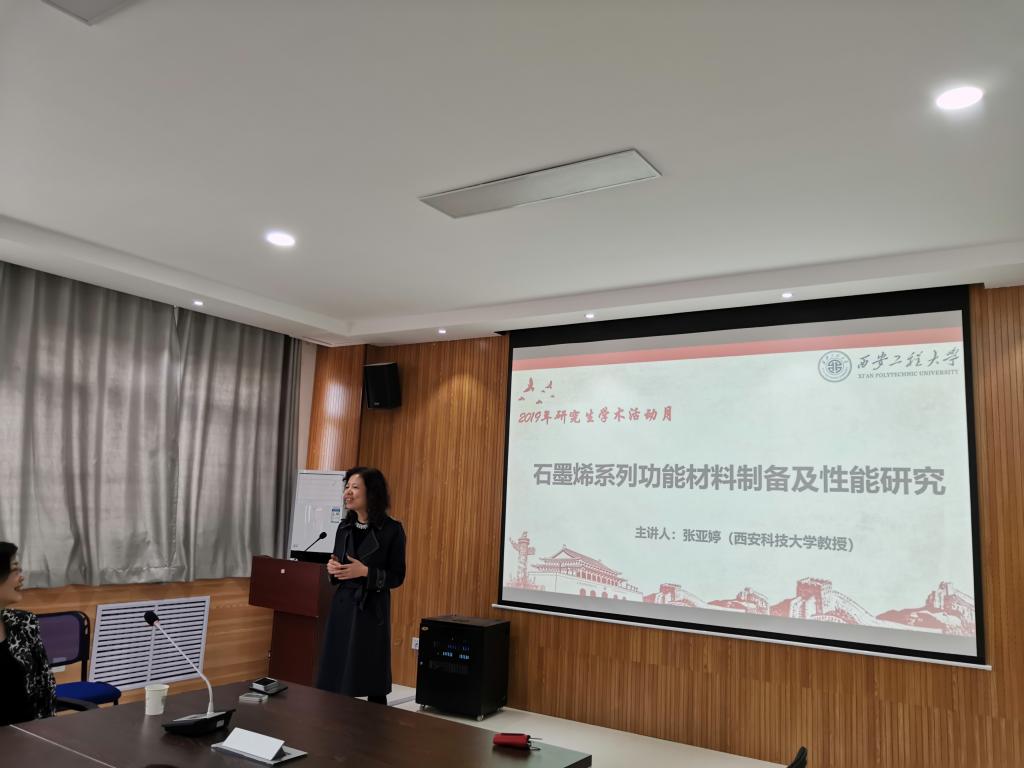 2019年11月7日下午,yl6809永利官网在507会议室举办了2019年研究生学术活动月活动,邀请西安科技大学教授张亚婷作了题为“石墨烯系列功能材料制备及性能研究”的学术报告。yl6809永利官网研一、研二学生参加了本次报告,报告会由学院副院长常薇主持。