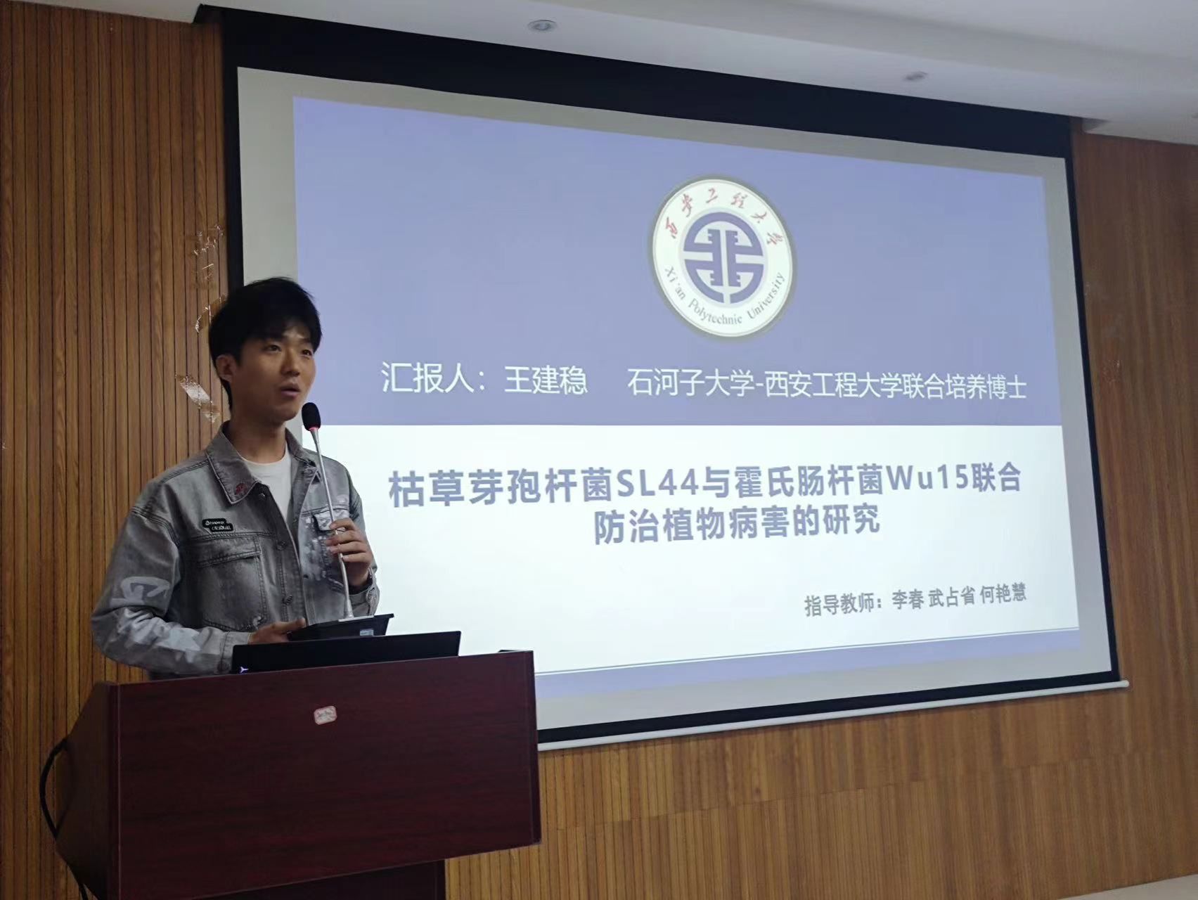 会上,石河子大学&西安工程大学联培博士研究生王建稳同学、21级优秀研究生刘甜、许涛声、李志燕等同学,分别带来了精彩的学术报告,分享了他们在研究生期间取得的学术成果以及心得。