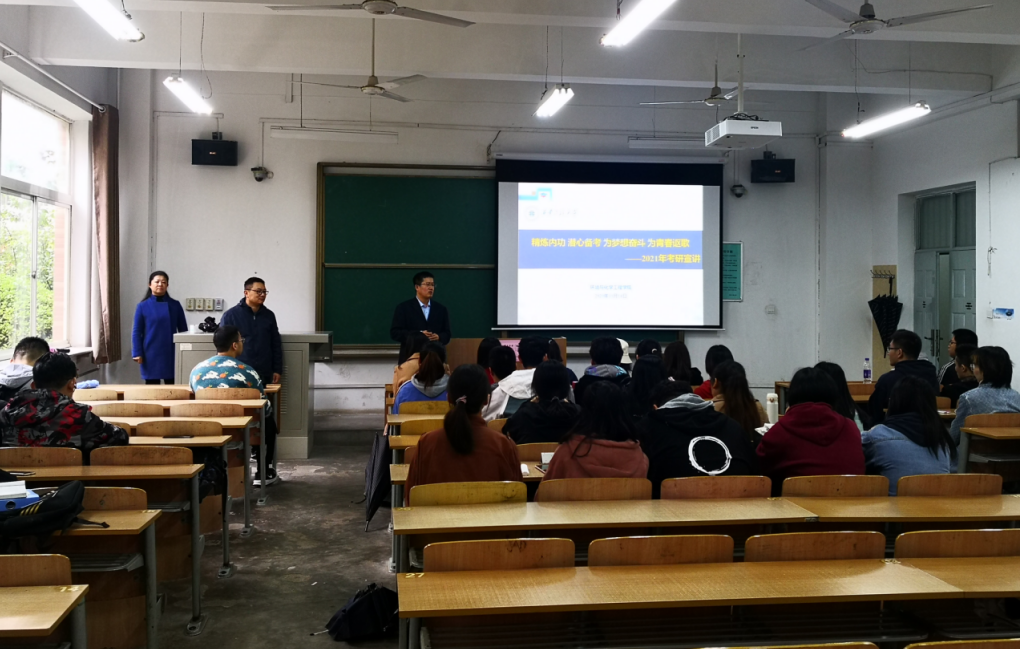2020年10月14日中午,yl6809永利官网化学工程系与生物工程系在教学楼A-122组织召开了2017级本科生考研动员会。院长助理武占省、化学工程系系主任刘斌、生物工程系系主任王晓军参加了此次会议。