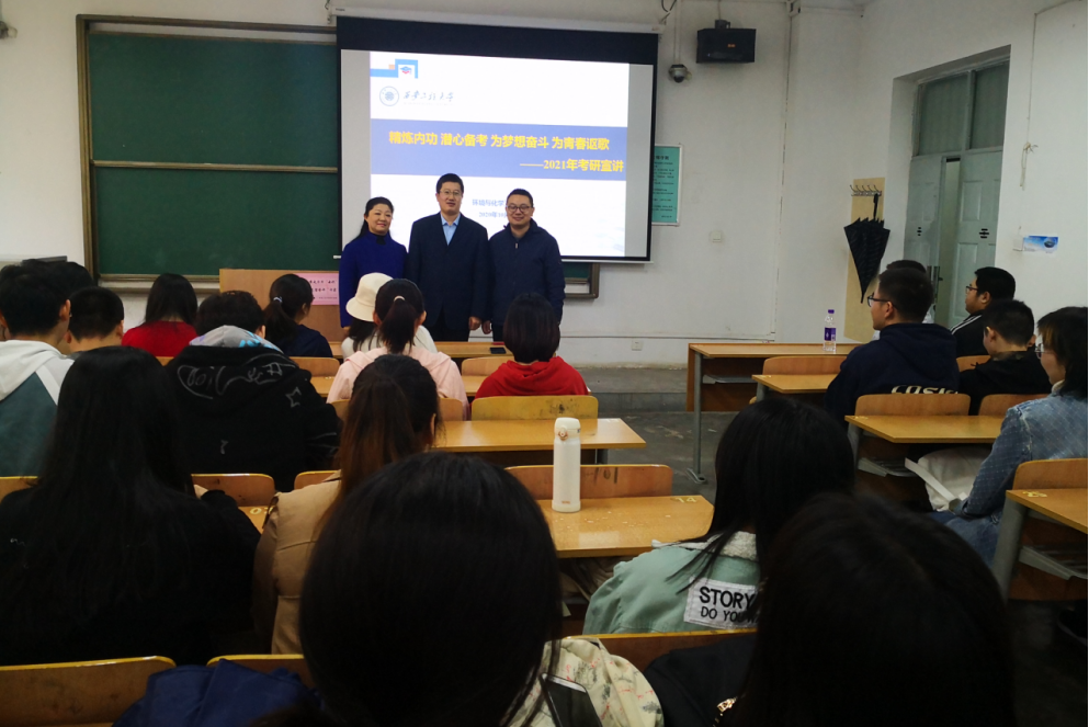 武占省从学校层面、学院层面、学科层面研究生教育的变化及趋势进行了介绍,指出了本学科的发展优势即报考本学科研究生的优势。希望同学们认真备考,实现人生的跨越。