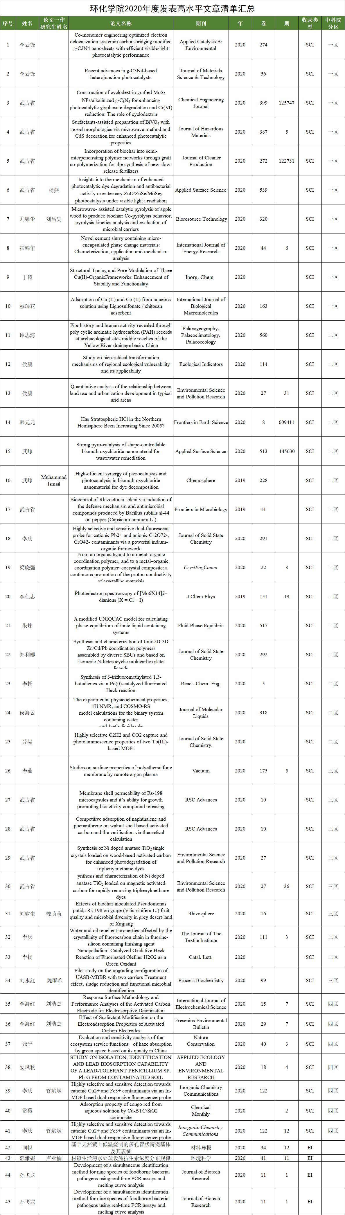 yl6809永利官网2020年度发表高水平文章清单汇总