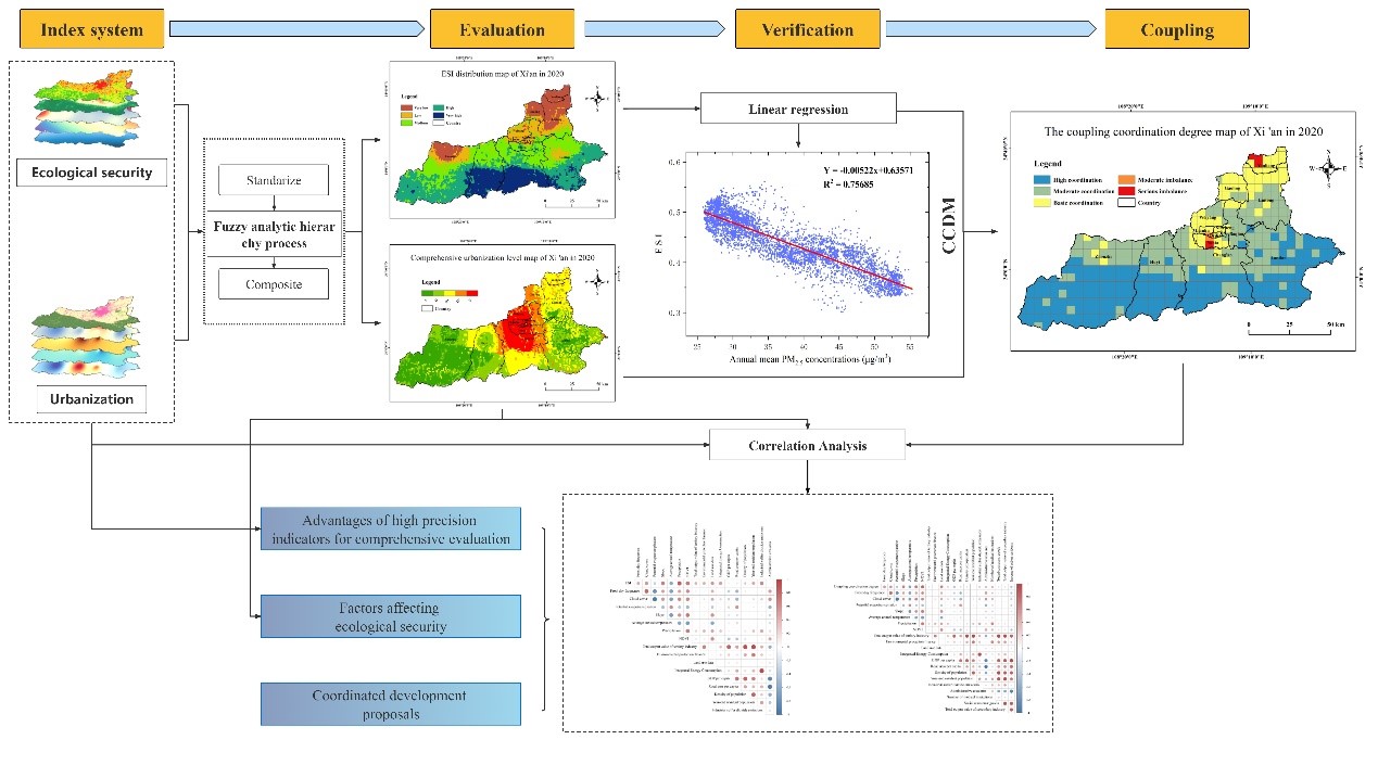 近期,yl6809永利官网以第一单位在环境领域的Top期刊“Ecotoxicology and Environmental Safety”(SCI一区,影响因子6.8)上发表了题为“Interpretation of the coupling mechanism of ecological security and urbanization based on a Computation-Verification-Coupling framework: Quantitative analysis of sustainable development”的最新研究。论文的第一作者为yl6809永利官网2021级研究生唐豪杰(获得2023年硕士生国家奖学金),通讯作者为侯康副教授,合作作者为西安交通大学李旭祥教授。