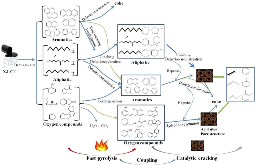 (1)从分子层面解析煤焦油及其裂解产物组成,阐明煤焦油制高附加值化学品反应路径。