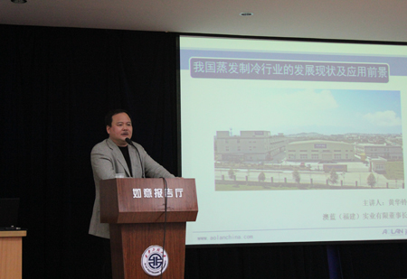下午,黄华铃董事长在我校金花校区如意报告厅为学院建环专业师生作了学术报告,报告分为“从个人创业心得体会”和“我国蒸发制冷行业的发展现状及应用前景”两方面。报告会上,黄华铃董事长和同学们还进行了现场互动交流,他分别就学生提出的有关企业管理、专业发展、技术研发、空调专业发展前景等问题进行了耐心细致的解答,精彩的解答不时赢得在场学生的阵阵掌声。