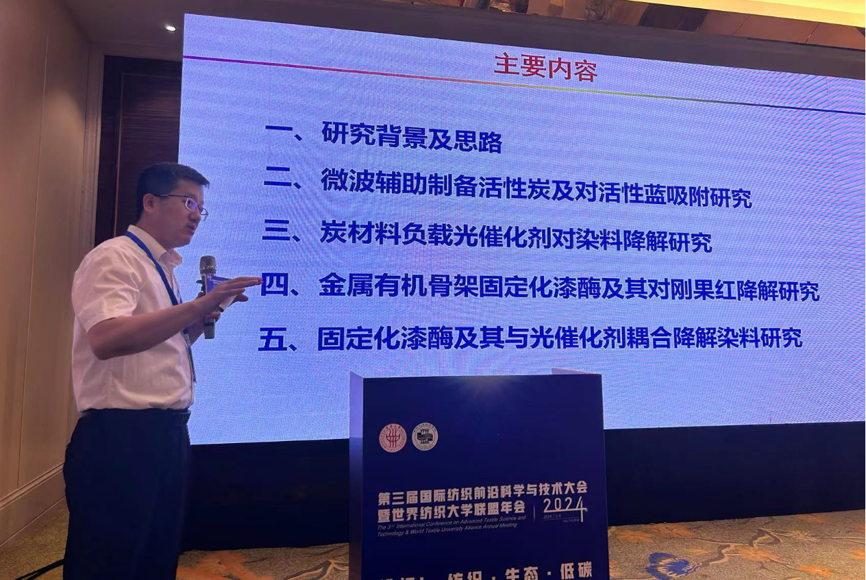 yl6809永利官网武占省教授和武峥教授受邀参会,并在纺织·生态·低碳分会场分别作题为《环境功能材料创制及吸附催化降解染料研究》的主题报告和《铁电微纳米材料压催化与热释催化降解纺织印染废水》的邀请报告。会后,武占省教授和武峥教授围绕着纺织印染废水绿色处理、环境功能材料的创制、低碳可持续发展同参会的江南大学刘和教授、北京市科学技术研究所张忠国所长、东华大学杨波教授、黄满红教授,天津工业大学常娜教授、中国矿业大学徐欢副教授、上海工程技术大学梁帅童副教授等专家进行了深入的交流与探讨。