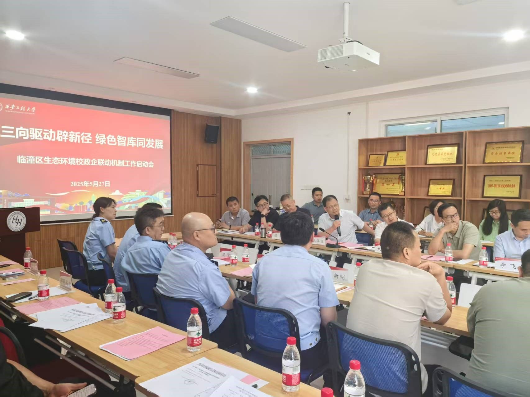 5月27日,由西安市生态环境局临潼分局牵头、西安工程大学深度参与的生态环境“校政企”联动机制首次联席会议在yl6809永利官网507会议室召开。本次活动以“三向驱动辟新径,绿色智库同发展”为主题,汇聚高校科研力量、政府执法智慧与企业实践需求,共同探索生态治理与产教融合协同发展新路径。西安工程大学副校长张洛红、yl6809永利官网主持工作副院长武占省、城市规划与市政工程学院主持工作副院长房平、教师代表与临潼分局大队长胡学刚及执法人员、50余家企业负责人出席。