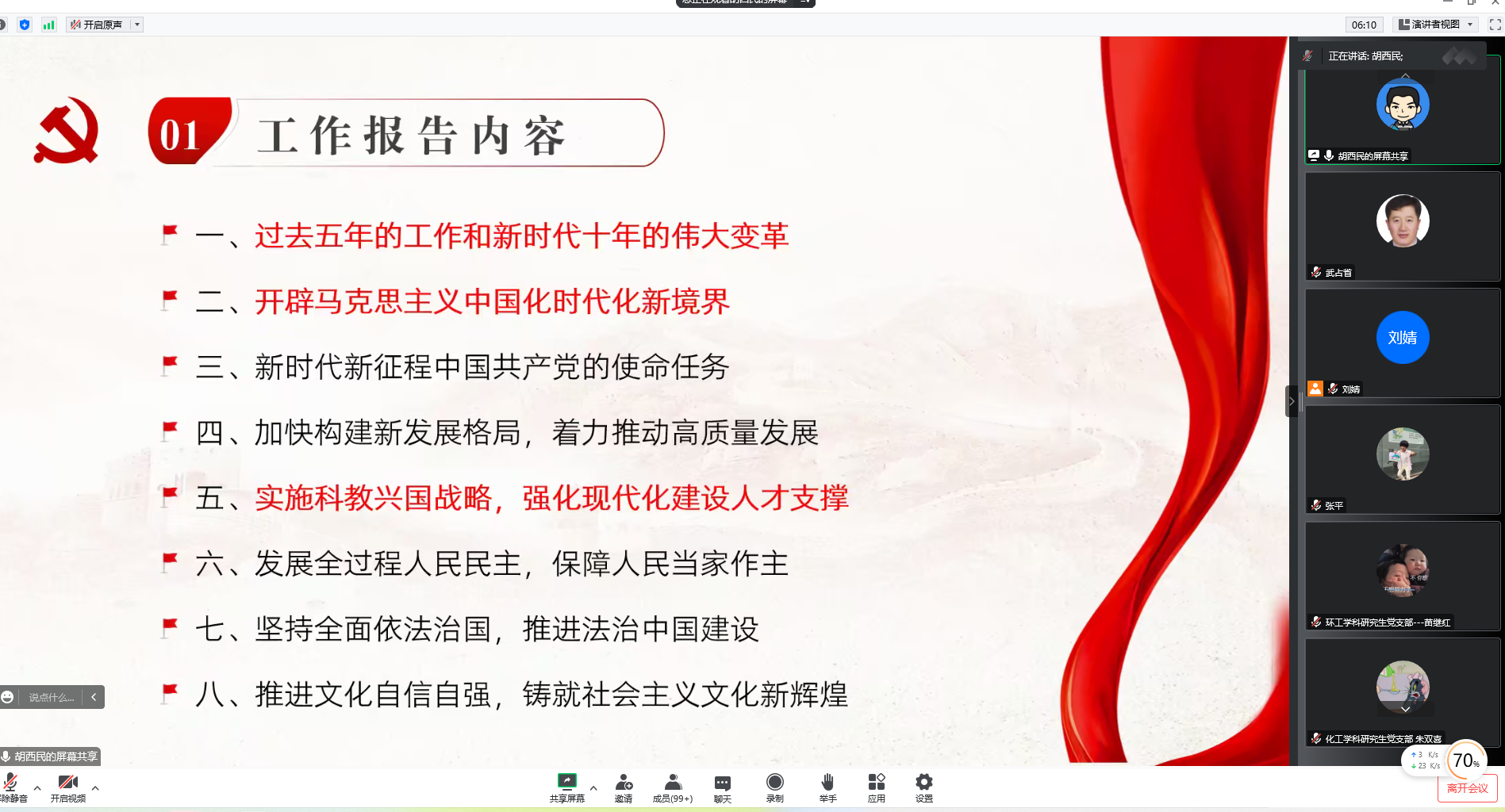 为了深入学习贯彻党的二十大精神,引导广大党员学深悟透党的二十大精神丰富内涵、核心要义与思想精髓,我院党委于11月15日上午10点举行学习贯彻党的二十大精神报告会。全院三百余名党员、预备党员、入党积极分子线上收看了报告会直播。