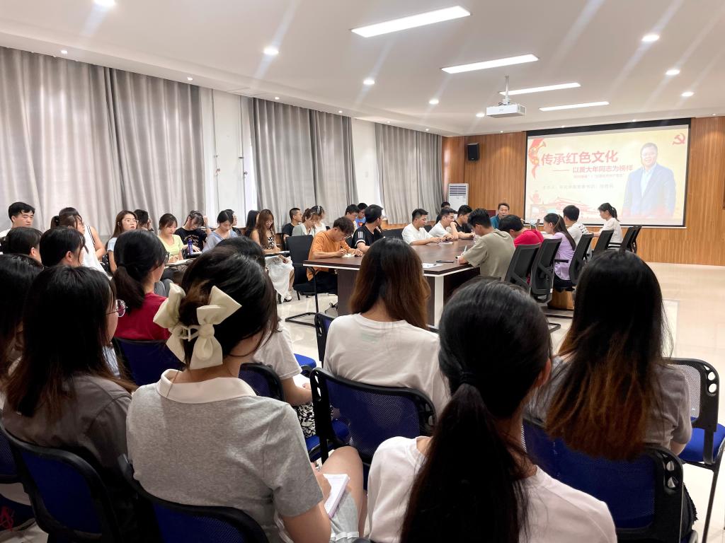 为庆祝中国共产党成立101周年,迎接党的二十大胜利召开,进一步激发我院新发展党员爱党爱国热情,引导党员进一步强化党性观念,7月7日下午,我院党委书记胡西民以“传承红色文化——以黄大年同志为榜样”为主题,为新发展预备党员讲授专题党课。本次党课由辅导员刘婧主持,全体62期预备党员聆听本次党课。
