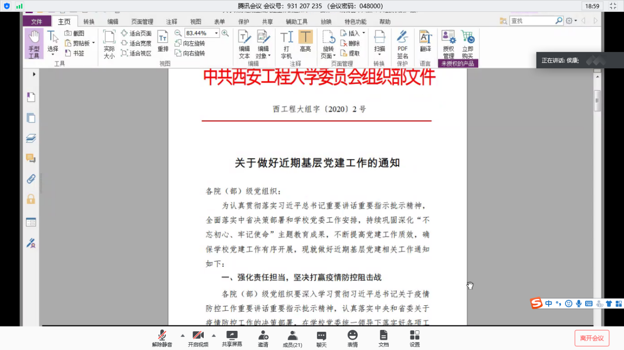 党支部书记侯康首先带领党员学习了我校关于做好近期基层党建工作和疫情防控相关文件要求,要求全体党员巩固“不忘初心、牢记使命”主题教育成果,强化责任担当意识,学习疫情防控知识,做好防范和保护措施。要求已返校党员发挥模范带头作用,配合学校关于疫情防控的工作部署,听从指挥,严格遵守学校规章制度,并积极协助老师开展疫情防控工作。