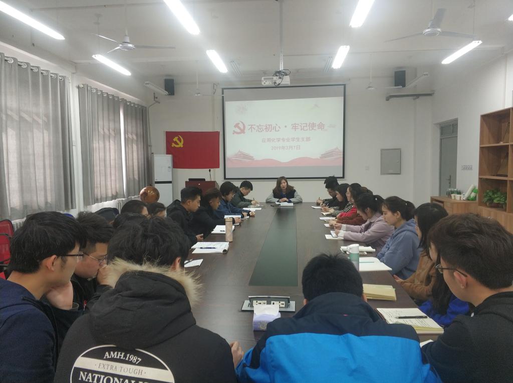 为深入领会“两会”精神,提高支部成员理论知识水平,yl6809永利官网应用化学专业学生党支部于2019年3月7日下午14:30在8号楼507会议室开展以“抓学习,树新风”为主题的党日活动,共同学习“两会”精神,分享自己的心得体会。