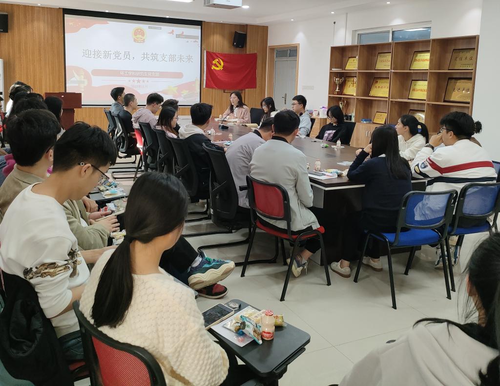 2023年11月1日,环工学科研究生党支部在学院507会议室开展了以“迎接新党员,共筑支部未来”为主题的党日活动。支部全体党员参加,会议由支部组织委员谭飞扬主持。