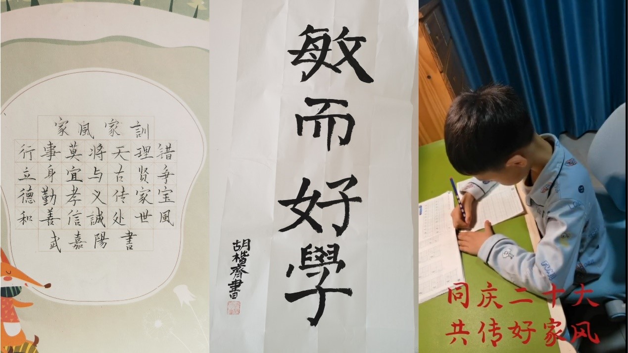 全院广大教职工及家属积极参加,内容精彩纷呈,形式丰富多彩。有的家庭全员精神饱满,共同朗读家风颂;有的引领子女一字一句,共读传统格言警句;有中小学生朝气蓬勃,诵读经典诗篇;有秀俊端庄的家风家训书法作品;有家庭温馨幸福的精彩瞬间留影。