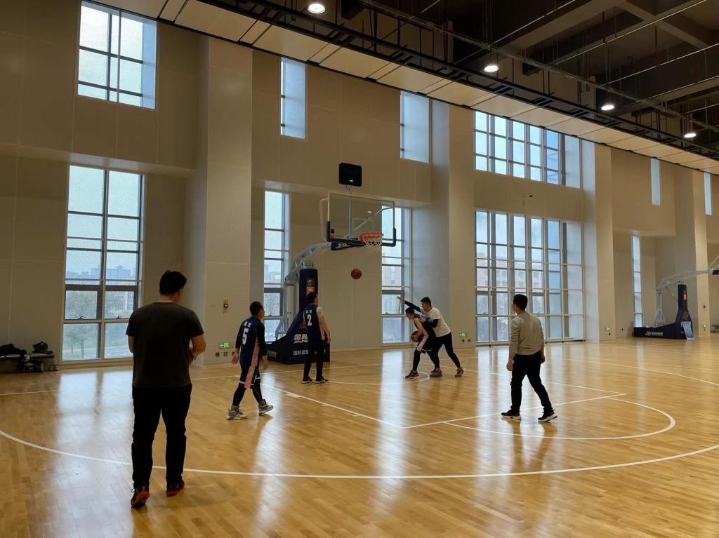 活动分为男子组3V3挑战赛和女子组定点罚篮赛两个集体项目。滴滴汗水,飘洒球场,伴随着矫健的步伐,奏响团结乐章;欢声笑语,放飞天空,伴随着坚定的目光,展望奋进未来。球场上老师们团结协作、攻防有序,高潮迭起、精彩纷呈,赢得场内外阵阵喝彩。