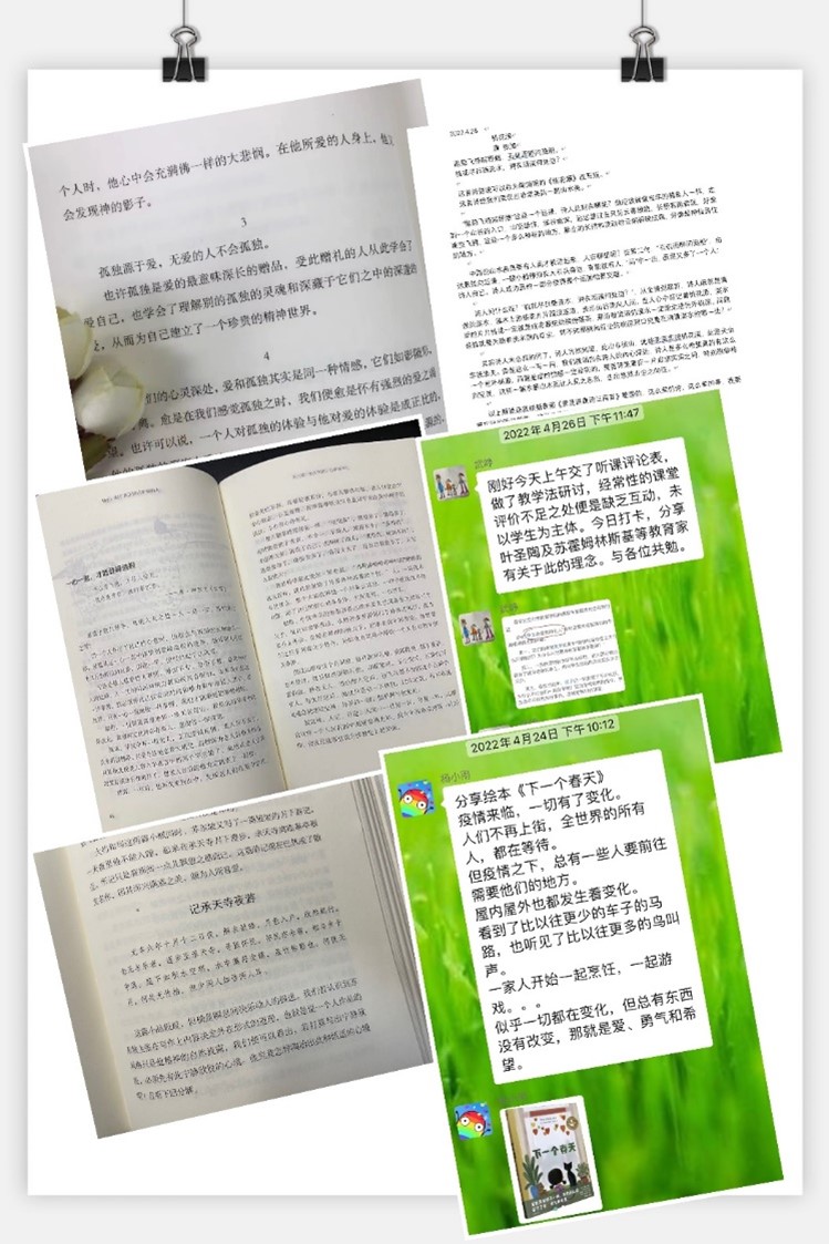 4月23日——4月30日期间,教职工积极参与线上读书打卡分享,并于4月28日在学院职工小家进行了线下读书分享。本次活动共分享小说传记、诗词散文、杂文随笔、育儿健康等各类书籍近百本,老师们分享读书故事与心得,结合当前抗疫形势,分享阅读给自己带来的成长以及美好感受,坚定了大家战“疫”必胜的信心。