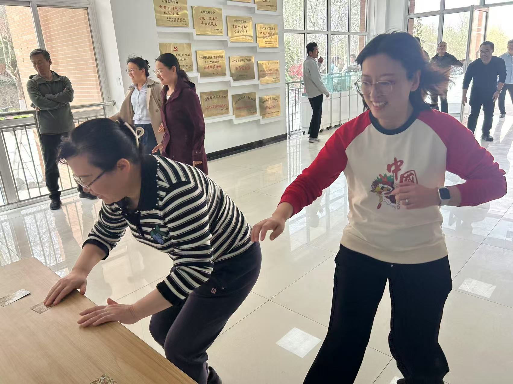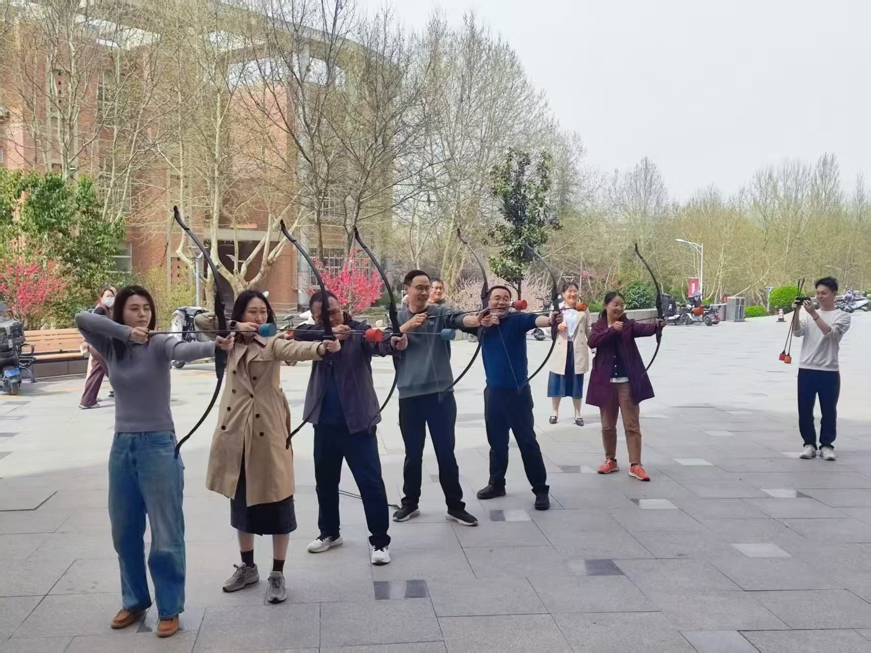 本次趣味运动会设置了团队项目和个人项目,充分彰显"寓教于乐"的理念。“百发百中”射箭比赛上,平日执笔育人的教师们化身神射手,搭箭、扣弦、开弓、瞄准、脱弦,一系列动作行云流水,展现出娴熟精湛的射箭技艺;“达·芬奇密码”协作赛考验的是团队协作能力,需要参与选手充分思考,迅速行动,及时纠错,老师们个个健步如飞,场下加油助威和欢声笑语不断;“神笔马良”协作赛要求6人合作控制一支笔,对力度、角度的要求很高,老师们不断交流,相互鼓励,挥就“奋进环化”四个遒劲大字。大家纷纷表示,通过参与此次趣味运动会,不仅锻炼了身体,释放了工作压力,还增强了团队凝聚力,收获了满满的正能量。
