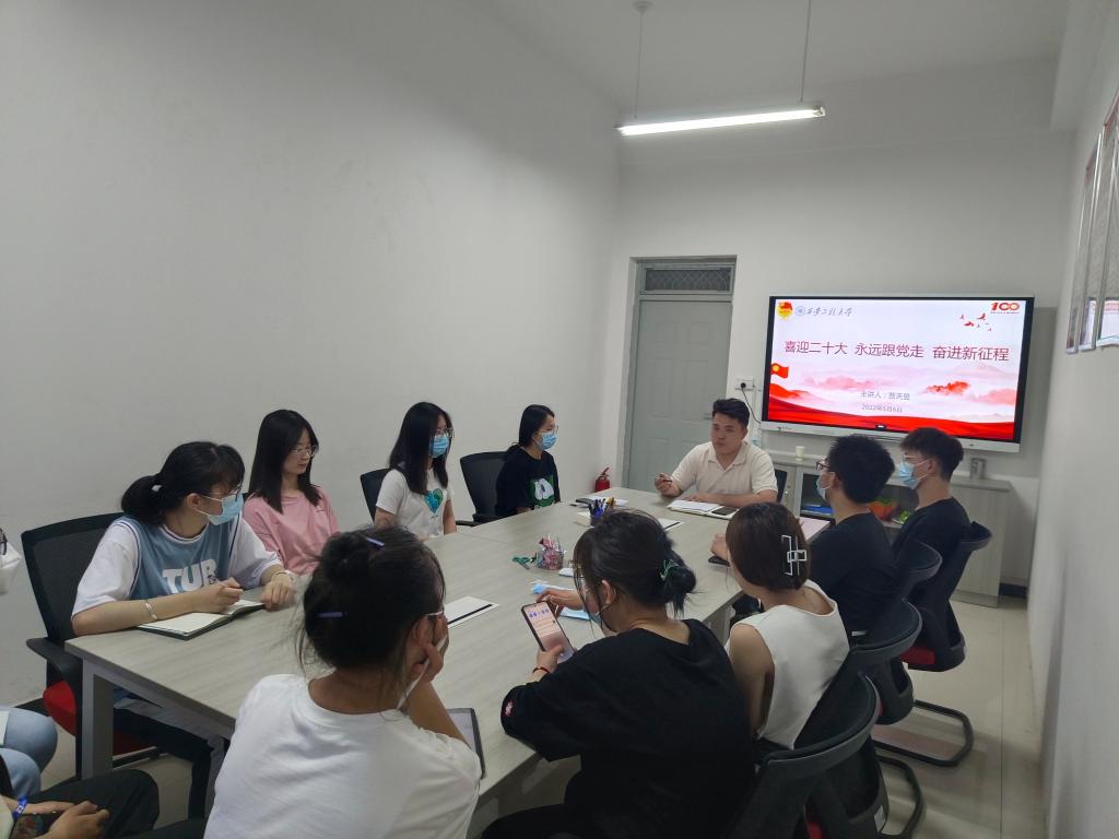 学院团总支书记贾天昱面向学院各基层团支部书记上了一堂主题为“喜迎二十大、永远跟党走、奋进新征程”的团课。带领团支部书记深入学习习近平总书记在中国人民大学考察时的重要讲话精神,强调作为团支书的责任与义务并提出关于团组织建设的新目标新要求;课上还领学了《新时代的中国青年》白皮书。各团支部采用线上线下结合的形式,面向本支部开展主题鲜明的微团课,内容涵盖习近平总书记关于青年工作的重要思想、党的青年运动史、新时代中国特色社会主义的伟大成就、传承红色基因等,实现团组织全覆盖。