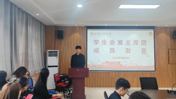 首先,任子瑜就今年换届大会做了简要介绍。随后,学生组织主席团成员分别对于上一学年的情况进行了总结汇报。接着,新一届主席团成员分别就今年工作计划进行表态发言。