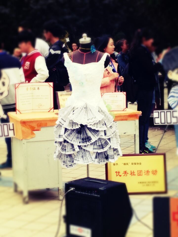 23日上午,“绿风”志愿者于西安工程大学中心广场搭建会展舞台,场地以一枚四层纸质手工蛋糕为主体,蛋糕顶部有一支折叠小花饰成的“16”字样,象征“绿风”十六周岁。卡通人物 象征“绿风”成长历程。由新闻编辑部制作的巨幅金色请柬立于蛋糕前,以示诚挚邀请广大师生前来参观,蛋糕四周环绕摆放了三个不同年龄段的卡通纸质人物,象征“绿风”一路的成长历程,其中人物旁的各种证书和奖状更是“绿风”取得丰硕成果的最好见证。照片墙展示“绿风”活动风采。活动现场还放置了十六年来的各类活动剪影,整个会场布置鲜亮缤纷,富有动感,每一个设计都具有其独特的意义。手工展品传达环保理念。志愿者部创作了一件别致的衣服,材料只使用了废旧报纸和不用的生活物品,充分展示了其部门创意,也向广大师生传达了环保的理念。生日歌曲弹奏生日歌送祝福会展期间,“绿风”社员给大家热情介了绍“绿风”的成长历程。既有遭遇的坎坷,也有创造的辉煌。泽韵琴行也献上一首生日歌为其诚挚祝福。最后,社员热情邀请同学参与到“贴瓶盖”这一环保趣味小游戏中来,各路同学也纷纷送来祝愿,展出的各种作品受到了同学们的一致好评,会展全程气氛高昂,成果展后“绿风”全体新老成员开展了交流座谈会。