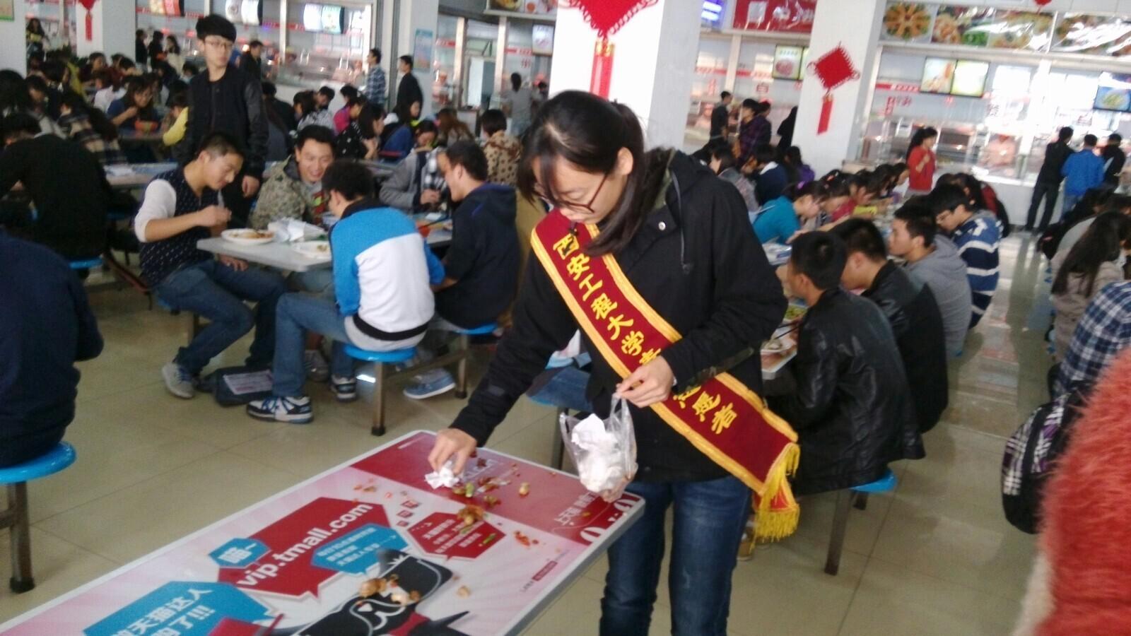 近期,学院团总支组织志愿者在学校食堂用餐高峰期协助维护用餐秩序,宣传“光盘行动”,提醒广大师生有序排队,按量购买,杜绝浪费,文明就餐。志愿者们还积极清理餐桌,保持食堂卫生,他们不怕脏不怕累的工作给广大师生提供了干净卫生的就餐环境。
