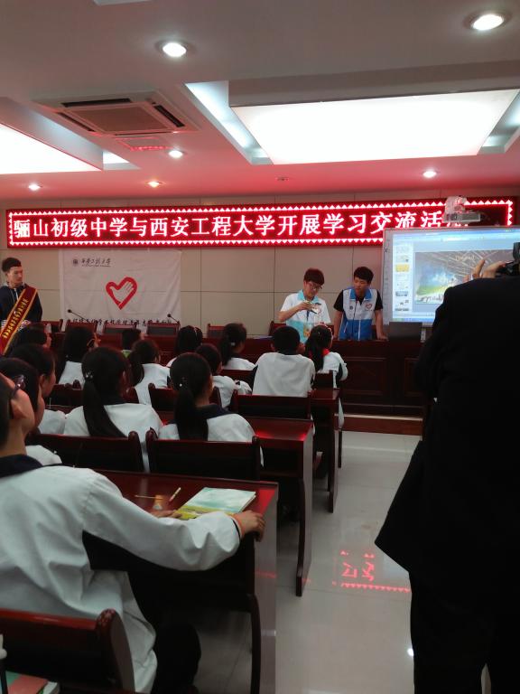 yl6809永利官网青年志愿者分队于2017年4月13日14:00带领18名大学生青年志愿者,在与骊山初级中学志愿服务项目负责人屈老师的沟通好的前提下,开展了以“趣味化学,多彩生活”为主题的志愿服务活动。为100多名初一的学生们带去有趣的化学小实验。