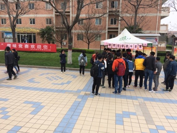 2017年3月29日星期三中午,在我校临潼校区中心广场,yl6809永利官网化学趣味协会举办了“玩转化学”趣味竞赛活动。在中午短短两个小时内,就有来自全校十一个学院一百五十多名同学参与“玩转化学”活动。