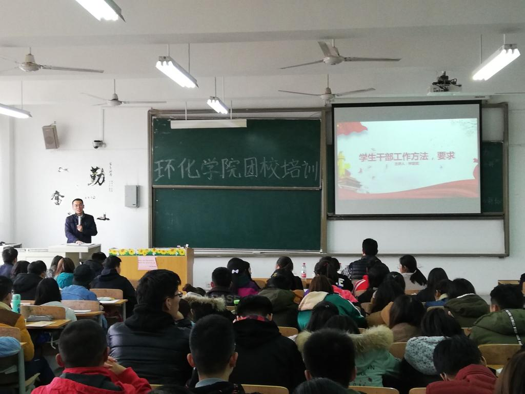 为进一步增强团员青年理论素养,提高广大青年自身能力和综合素质,11月6日下午14:00,我院于教学楼D-382举办了以“学习总书记讲话,做合格共青团员”为主题的团校培训班。学工办主任林定武、团总书记贾天昱以及本次团校培训班全体学员参加了此次培训。