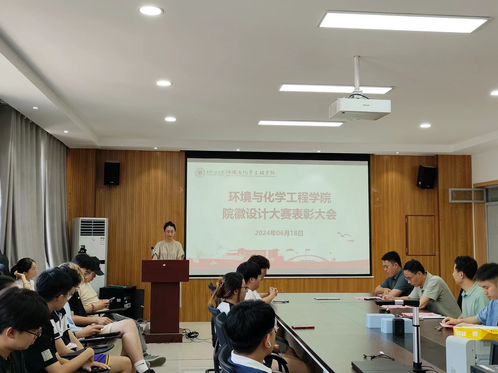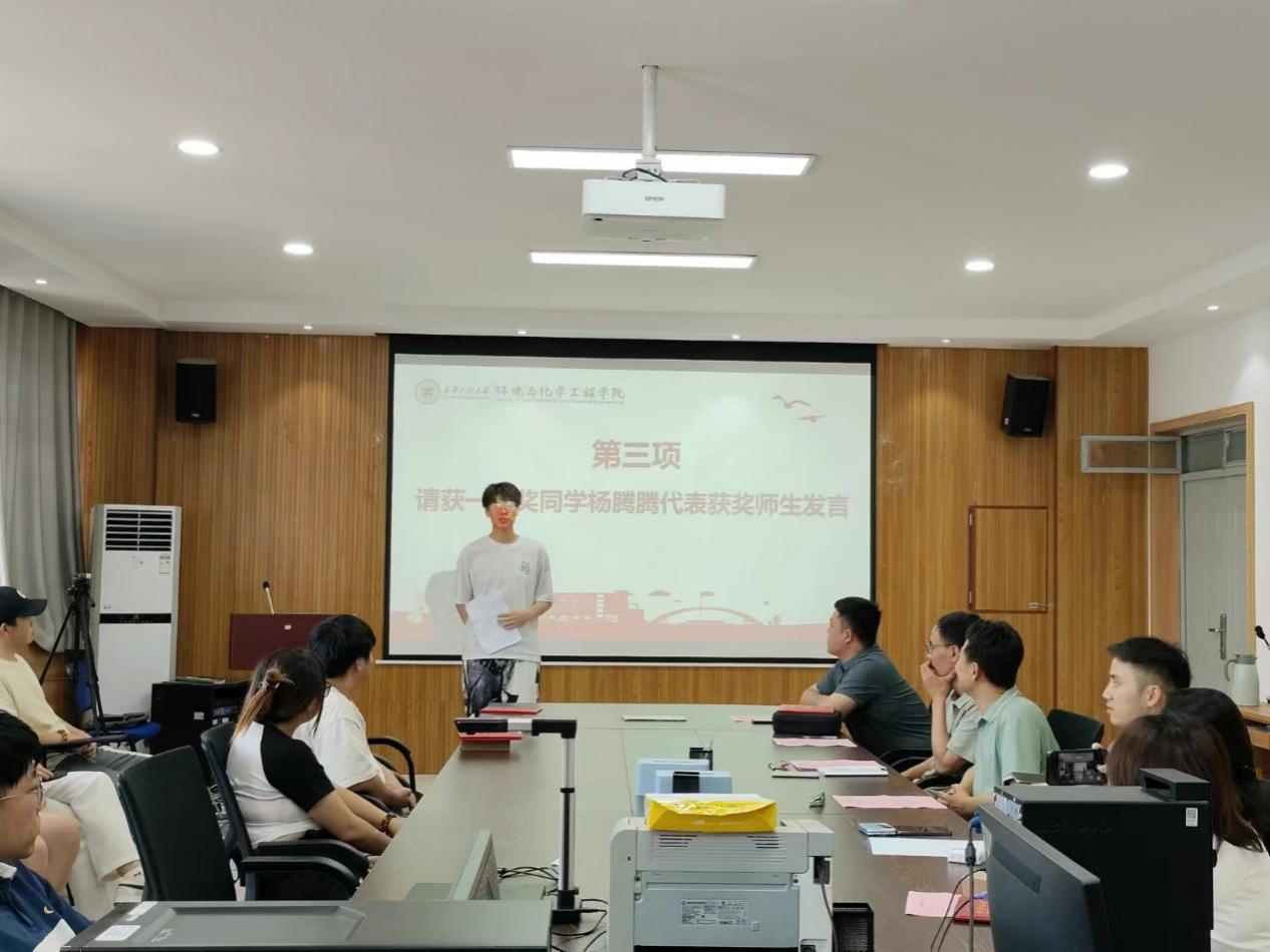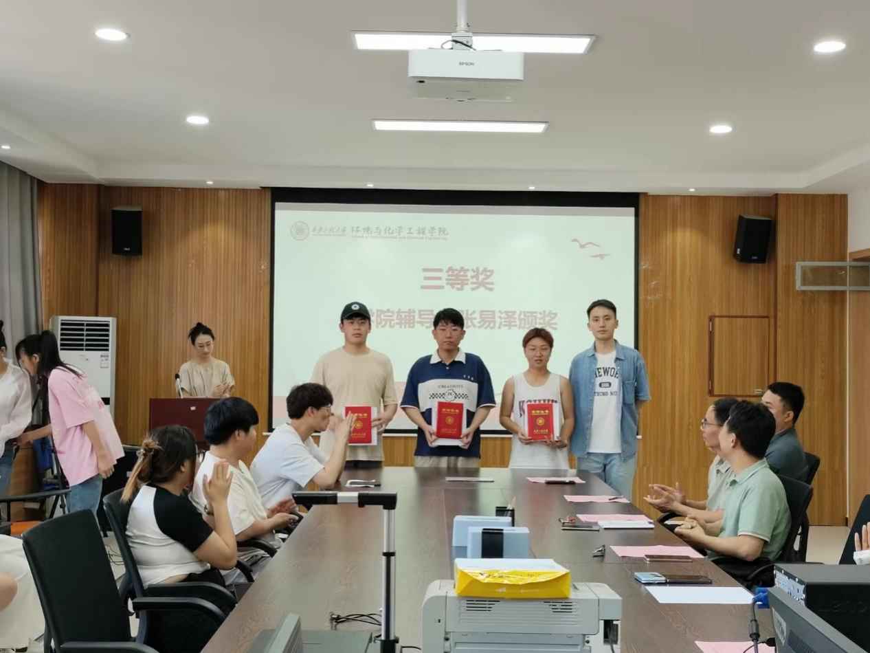胡西民在总结讲话中,对我院的院徽设计大赛表示了肯定,向受表彰的同学们表示祝贺。他表示,院徽设计大赛不仅是一次设计比赛,更是一次提升学院凝聚力和文化内涵的重要活动。通过比赛,师生们展现了出色的创意和才华,也进一步增强了他们对学院的认同感和归属感。他指出,通过本次院徽设计大赛看到了我院师生对绿色环保学科领域的热爱和对学院未来发展的美好期待,这种热情和创造力激励着学生不断追求卓越,并为学院的发展注入了源源不断的动力。他希望,所有环化师生都能牢记初心与使命,将所学知识本领投入到党和国家的各项伟大事业之中,用实际行动践行习近平新时代中国特色社会主义思想,用踔厉奋发、青春向上的力量,展示环化莘莘学子坚持学思践悟新思想、勇于担当有作为的精神面貌,共同推动学院的繁荣发展。