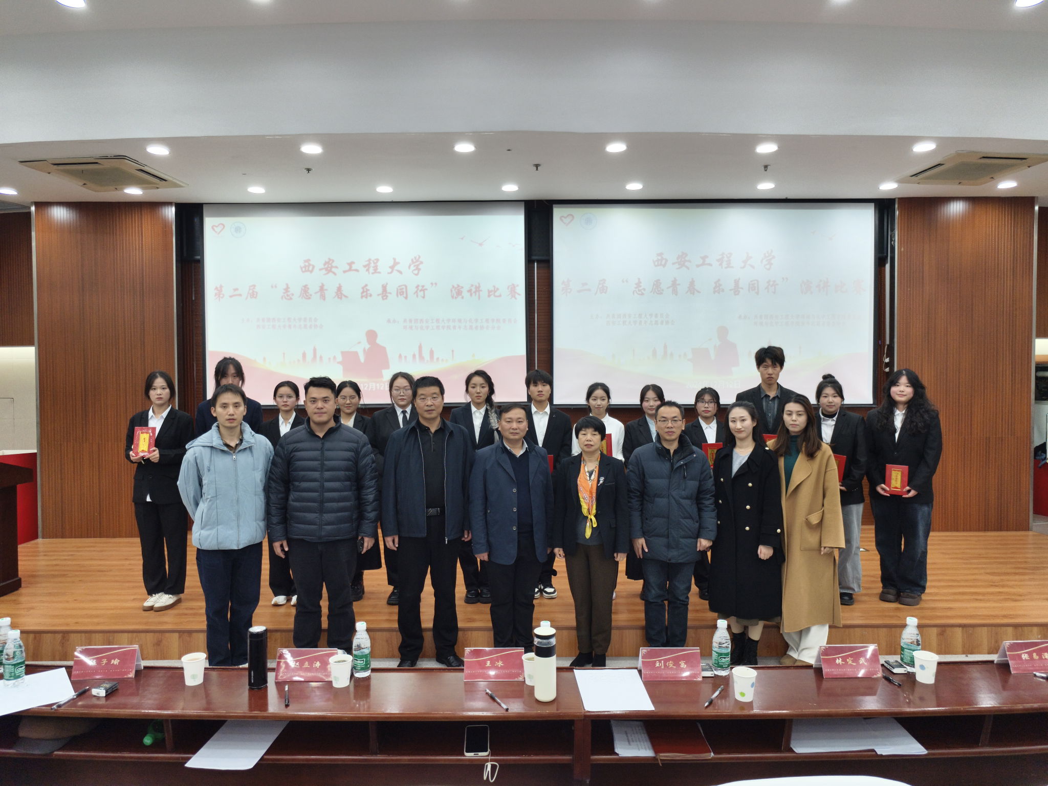 为深入学习贯彻党的二十届三中全会精神和习近平总书记关于志愿服务的重要论述,向我校学子弘扬志愿服务精神,12月12日,由yl6809永利官网承办的西安工程大学第二届“志愿青春 乐善同行”演讲比赛决赛在临潼校区图书馆二楼报告厅隆重举行。比赛邀请陕西省环保志愿者联合会秘书长王冰、校团委书记刘俊富、人文学院党委副书记赵立涛、校团委干部李梦琦、yl6809永利官网党委副书记林定武和全体辅导员担任评审,来自学校各学院的近200名学生志愿者观摩比赛。