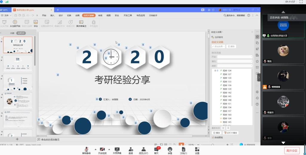会议伊始,赖斌给2017级同学们介绍了今年严峻的就业形势,希望同学们在积极配合做好疫情防控工作的同时,能够结合自身情况明确今后发展目标,调整好心态,做好充分准备。考研的同学更要不畏艰苦,合理运用网络平台进行复习,认真向考研优秀的同学学习经验,争取在今年的考试中取得优异的成绩。随后,邵旭、徐园园、侯中科、张艳杰结合自身的考研经历,从考研目标的制定、学习时间规划、专业课复习技巧、考前心态调整等方面与同学们分享自己的考研经验。同学们也提出了自身的疑惑,学长学姐们耐心解答疑惑,并提醒同学们一些其他在考研中应该注意到的事情。