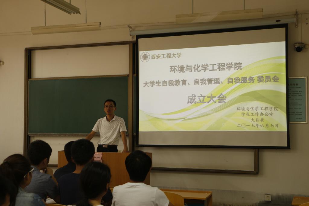 2017年6月7日下午,yl6809永利官网大学生自我教育、自我管理、自我服务委员会(简称“环化大自委”)成立大会,在临潼校区教学楼D-1102顺利举办。出席本次大会的有yl6809永利官网学生工作办公室主任林定武、15级辅导员贾天昱、16级辅导员王春元及原yl6809永利官网纠察队和学风督察岗的所有同学。