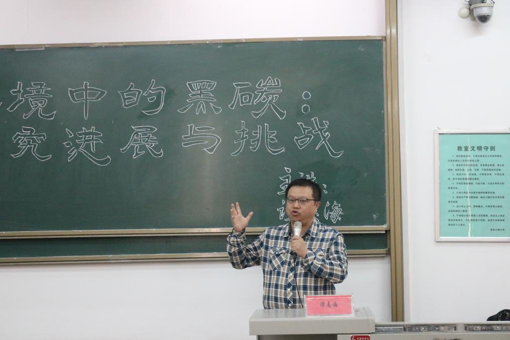 2017年3月27日14:00点,我院谭志海副教授在B-233教室举办了《环境中的黑碳:研究进展与挑战》为主题的学术报告。参加本次讲座的有:yl6809永利官网党委副书记袁群,yl6809永利官网学工办主任林定武,14、15、16级环科、环工专业学生。
