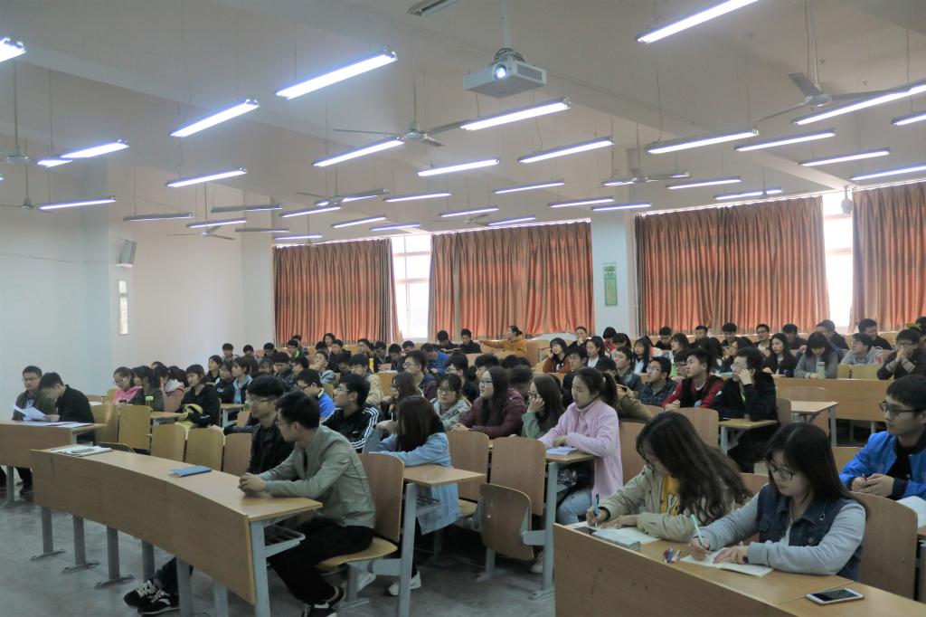 在报告会开始,林定武对谭志海及报告会的主要内容做了简要介绍。整个报告会从黑碳的研究背景及意义、黑碳的定义、测量方法以及黑碳与全球气候变化和污染的关系等方面展开,重点介绍了黑碳气溶胶与污染的问题。此外,谭志海还给在座的同学们分享了一些他出国学术交流的经历。谭志海语言幽默,现场气氛活跃。在报告会的最后,谭志海提出了对同学们的期望与要求:拓宽思维,打好基础。最后,林定武对整个报告会做了最后的总结也提出了自己的期望。整场报告会圆满成功。
