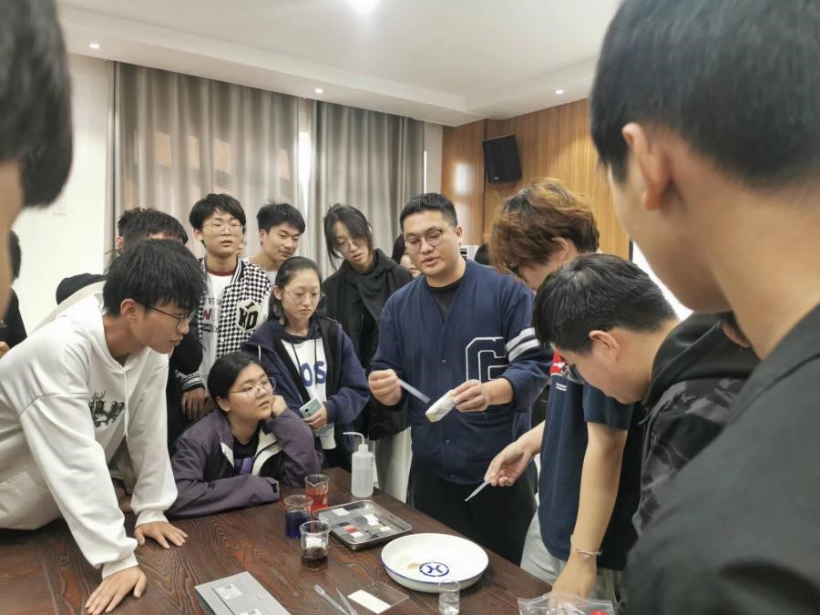 此次活动特别邀请了两位优秀研究生同学做了两场精彩的报告。张鹏远同学报告题目为“超疏水表面在海洋领域中的应用”,从超疏水表面现象,表面构造,表面应用及难题等方面进行了介绍,并现场演示了超疏水表面的银镜现象、超级斥水和自主清洁等非常神奇之处,引起了同学们强烈的好奇心和科研兴趣。部分同学积极踊跃地参与到其中,亲自体验了这个实验过程,真切感受到了实验乐趣。邱霜雪同学报告题目为“如何成为一个准研究生”,从大学规划的角度,向同学们介绍了阅读文献,科学实验,论文写作等重要性。尤其向同学们讲解了文献检索与管理的经验和方法,并为同学们论文写作方面推荐了几个文献检索网站与规则。