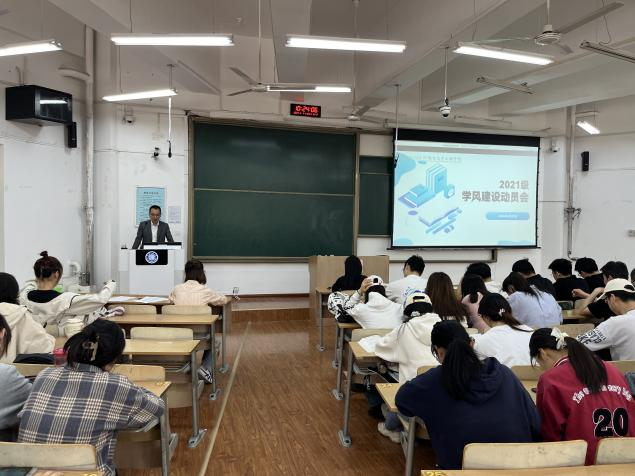 为了进一步加强学风建设,营造良好的学习氛围,我院于4月23日上午在B-137召开了2021级本科生学风建设动员大会。学院党委副书记林定武、21级辅导员刘婧、学院教务老师耿倩以及21级全体本科生参加了此次会议。