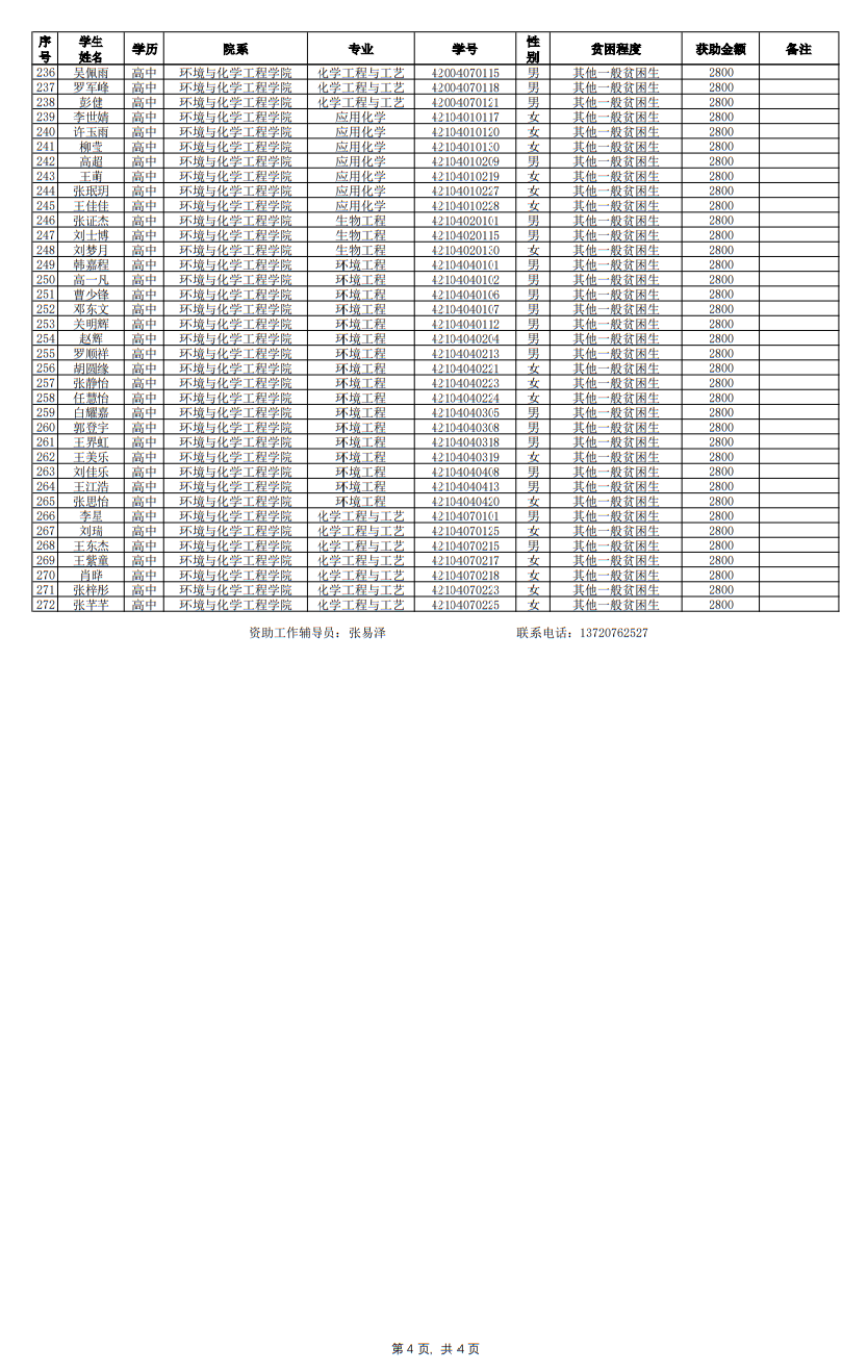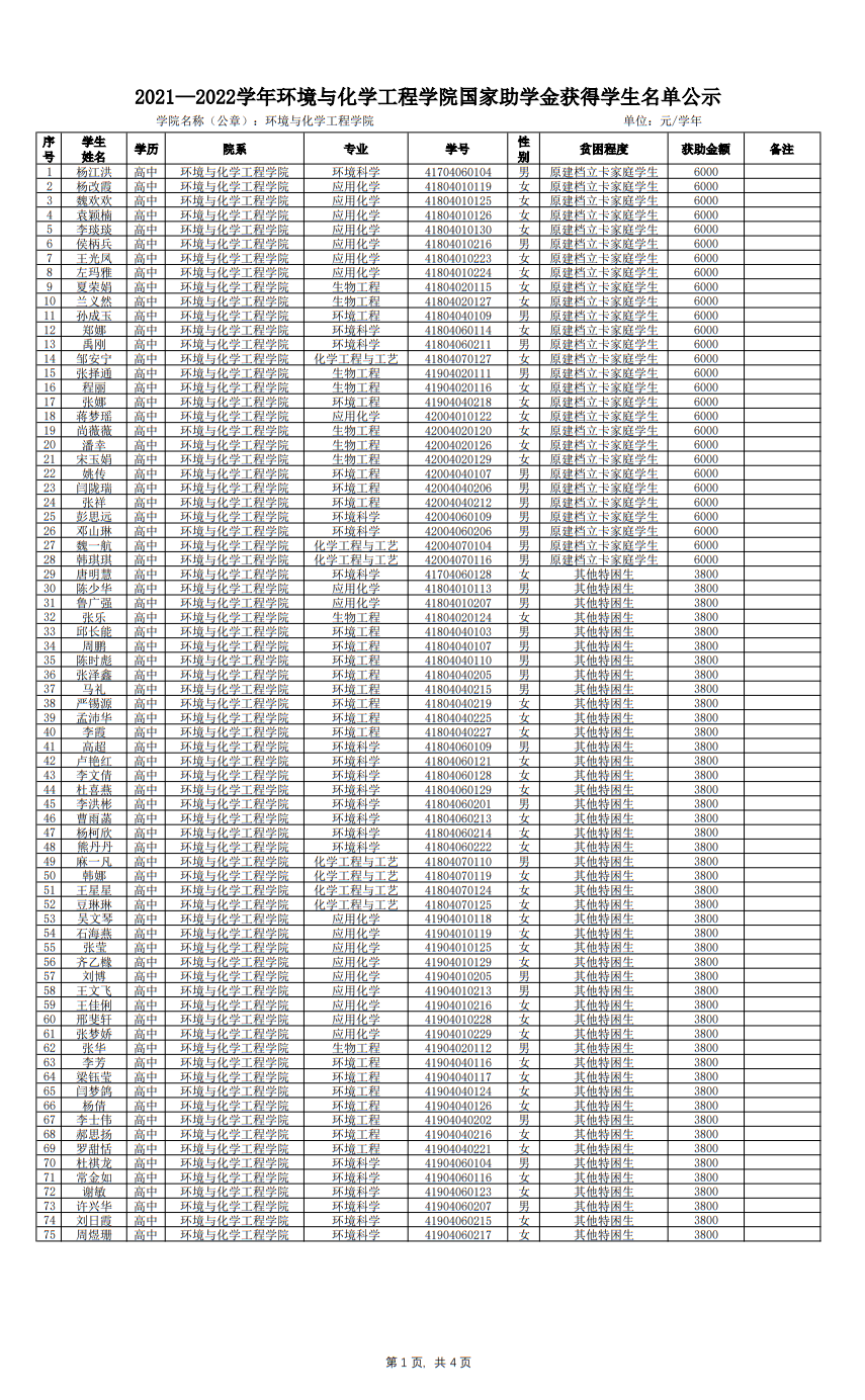 根据《西安工程大学本科生国家助学金实施细则》及《关于开展2021-2022学年国家助学金评审工作的通知》相关要求,本着公平、公正、公开的原则,经学生申请,班级推荐等程序,经学院资助工作领导小组会议研究决定,评定杨江洪等272名同学为2021-2022学年国家助学金获得学生,具体名单见附件,公示时间3个工作日(2021年11月8日-2021年11月10日)。