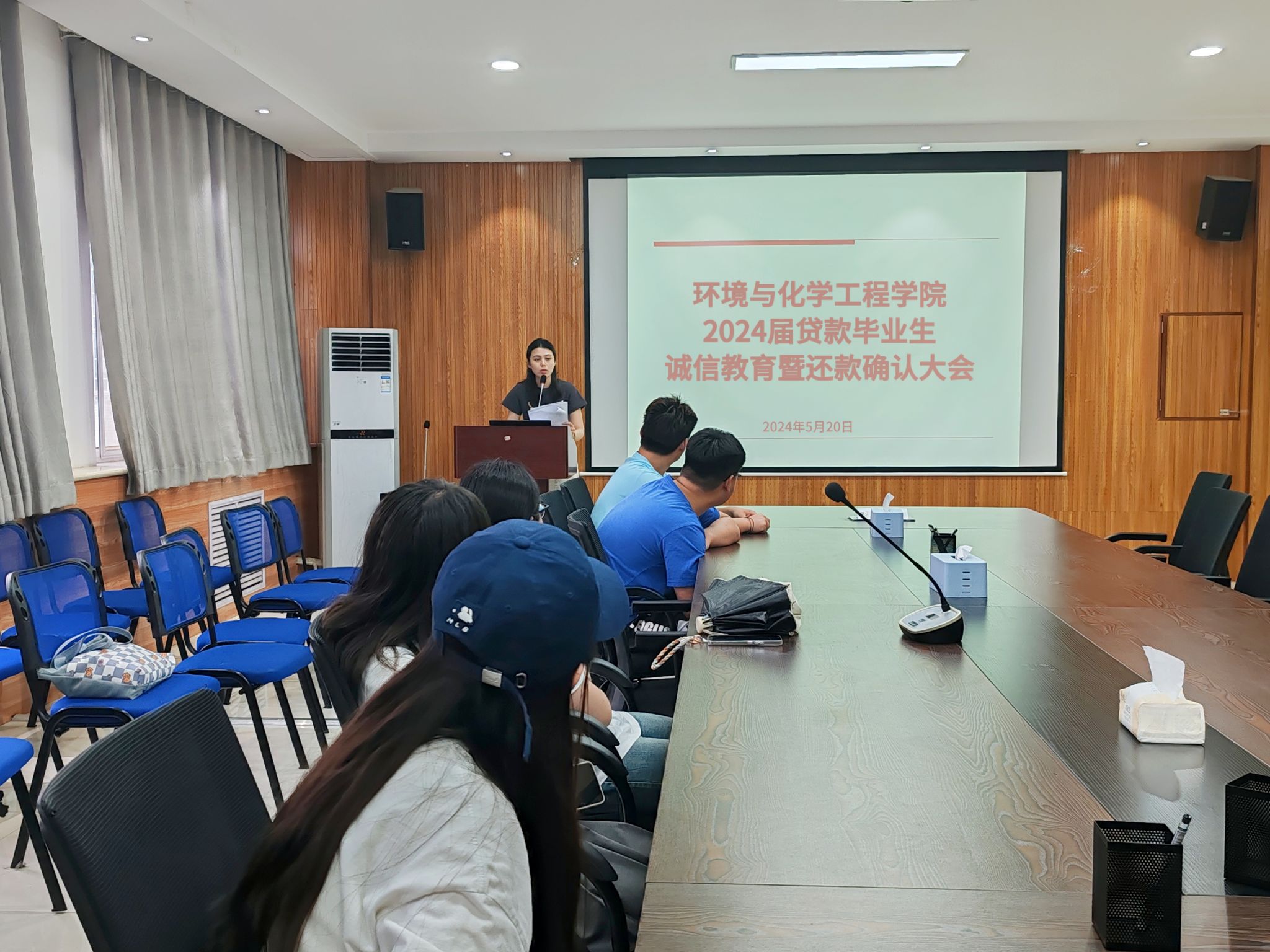 为进一步加强毕业生诚信教育,帮助我院2024届生源地贷款毕业生做好按时还款工作,5月20日,在环化楼507会议室召开2024届毕业生诚信教育暨毕业生还款确认大会,全体生源地贷款毕业生参会,会议由资助辅导员盖潇宇主持。