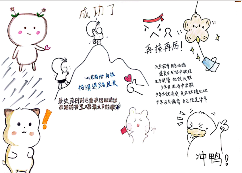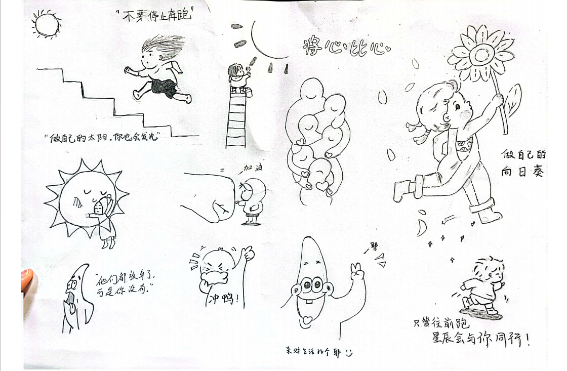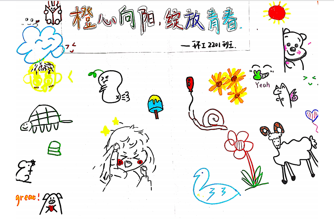本次活动内容围绕世界卫生精神日,面向全院学生征集接力绘画作品。“橙心向阳,绽放青春”主题接力绘画活动期间,各专业学生积极参与,通过漫画,手抄报等不同形式的绘画作品宣扬健康心态,引导广大学生正确认识自我,接纳自我,学会自我调适,关爱他人,促进学生健康成长成才。同学们团结合作,结合社会实践与自身感受,接力完成绘画。展现了当代大学生奋发蓬勃,积极向上的精神风貌。以生动的方式完成了我院有特色的心理活动