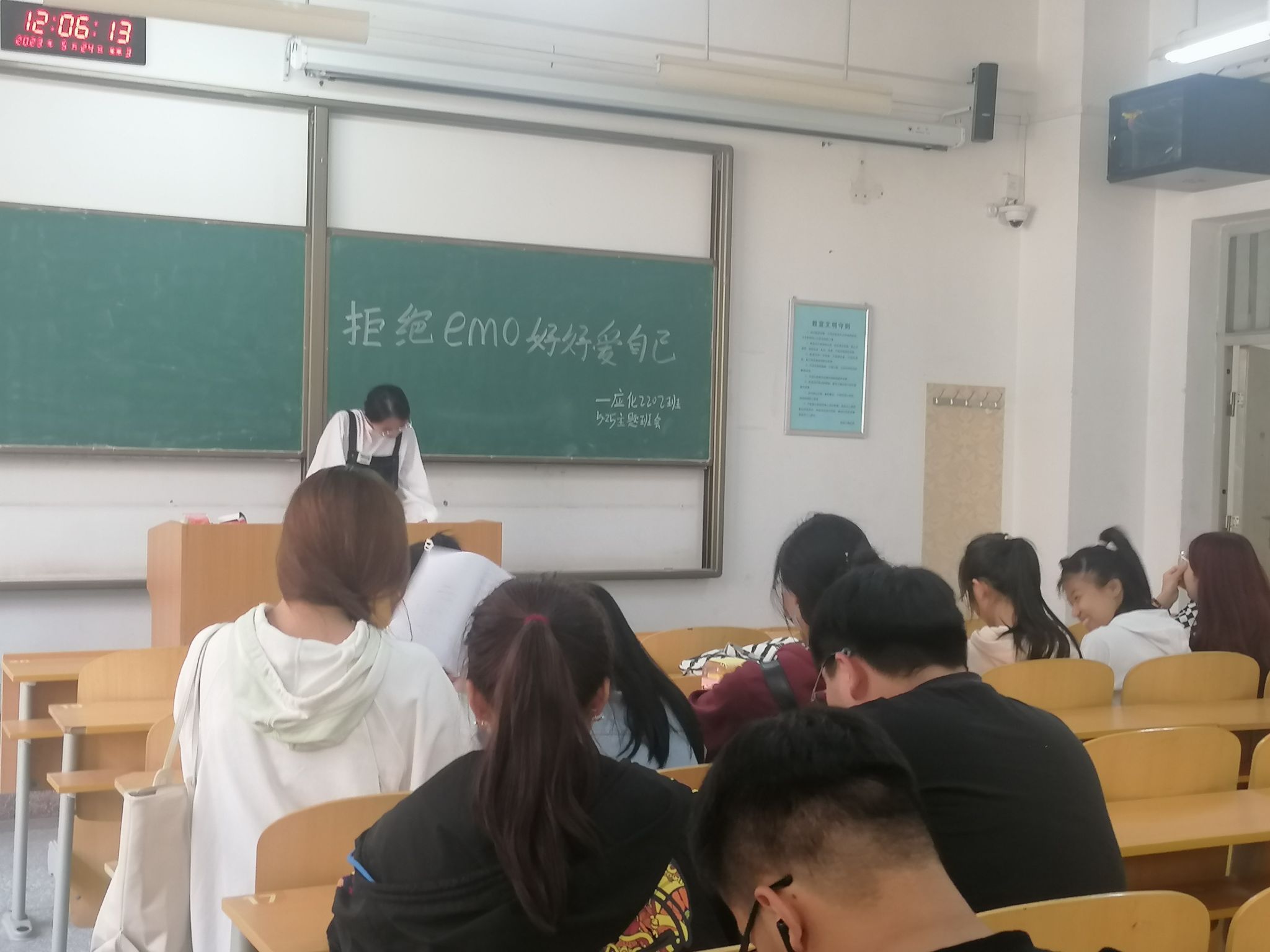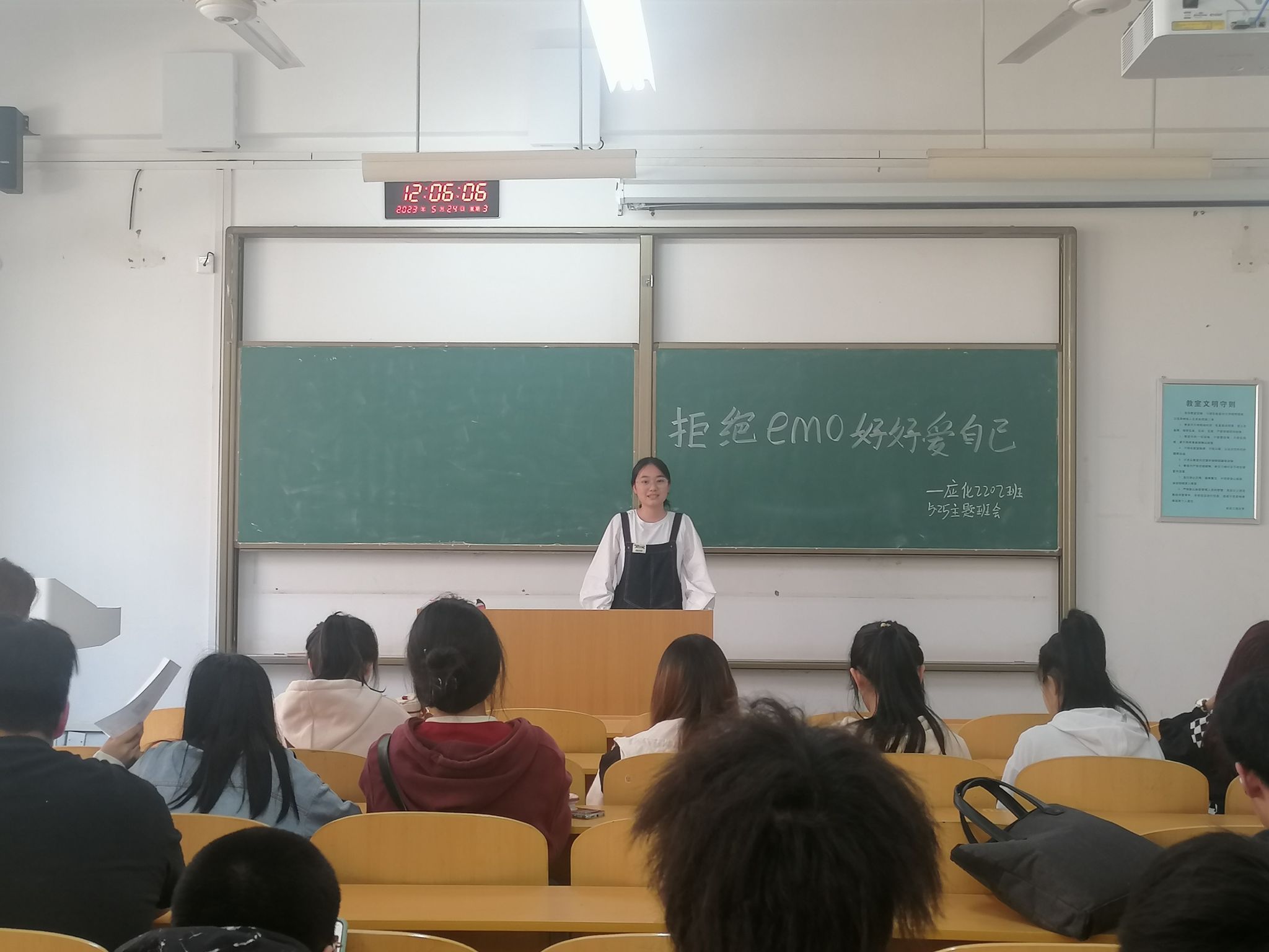 班会初始,张易泽结合班级实际情况对本次班会的目的和意义做出说明。通过讲解PPT让学生了解更多的心理健康知识,引导学生将心理健康知识掌握的更加全面,倡导同学们关爱自己,关心他人,遇到问题可到学校大学生心理健康教育中心寻求专业帮助。大学生只有学会了爱自己,才能懂得如何去爱别人、爱社会、爱国家,青年大学生是国家未来发展的关键力量,而心理健康发展首当其冲,维护好大学生的心理健康,才能成就国家的未来,张易泽老师强调到:好的人生是一种过程,而不是一种静止的状态,它是一个方向,而不是一个终点。