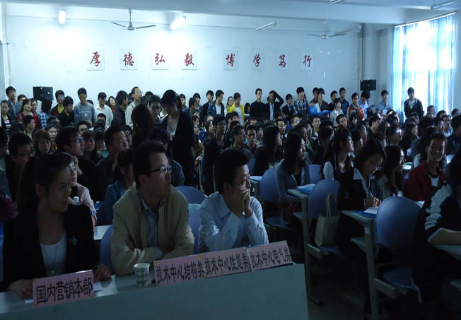 在金花校区就业指导中心召开“志高空调”招聘宣讲会,教室内外挤满了前来应聘的学生。邓安哲校友为广大同学做了招聘宣讲,同时介绍了自己毕业后的发展情况,希望能够和学院长期对接,促进校企双方共同发展。希望将来能有更多优秀毕业生到志高集团工作。