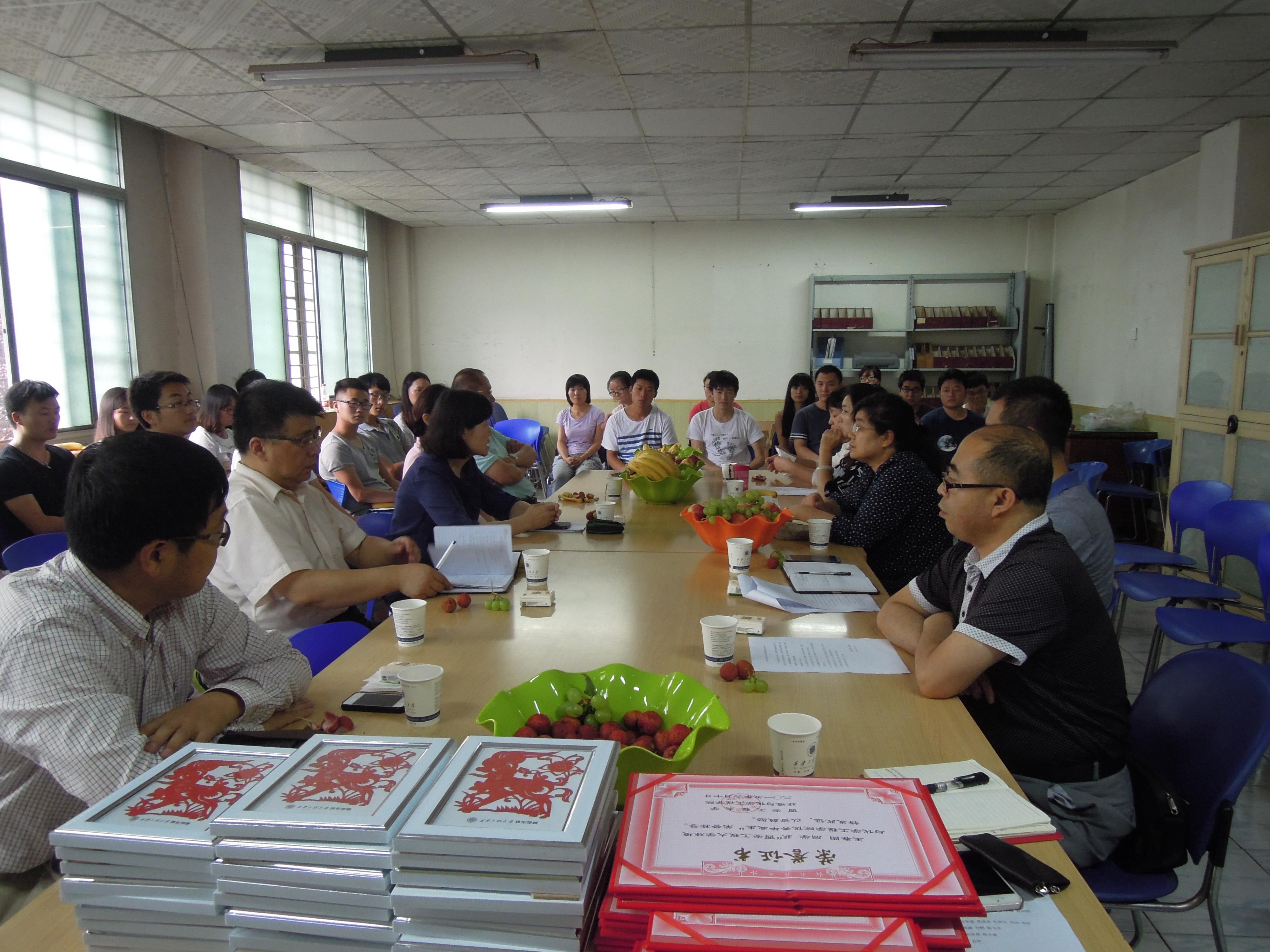 6月24日下午,在金花校区环化楼二楼资料室召开了yl6809永利官网2015届毕业生座谈会,狄育慧、李建学等学院领导、各专业学科带头人、教研室主任、部分教师代表、学生辅导员和毕业生代表参加了座谈会,座谈会由环化党委副书记袁群主持。