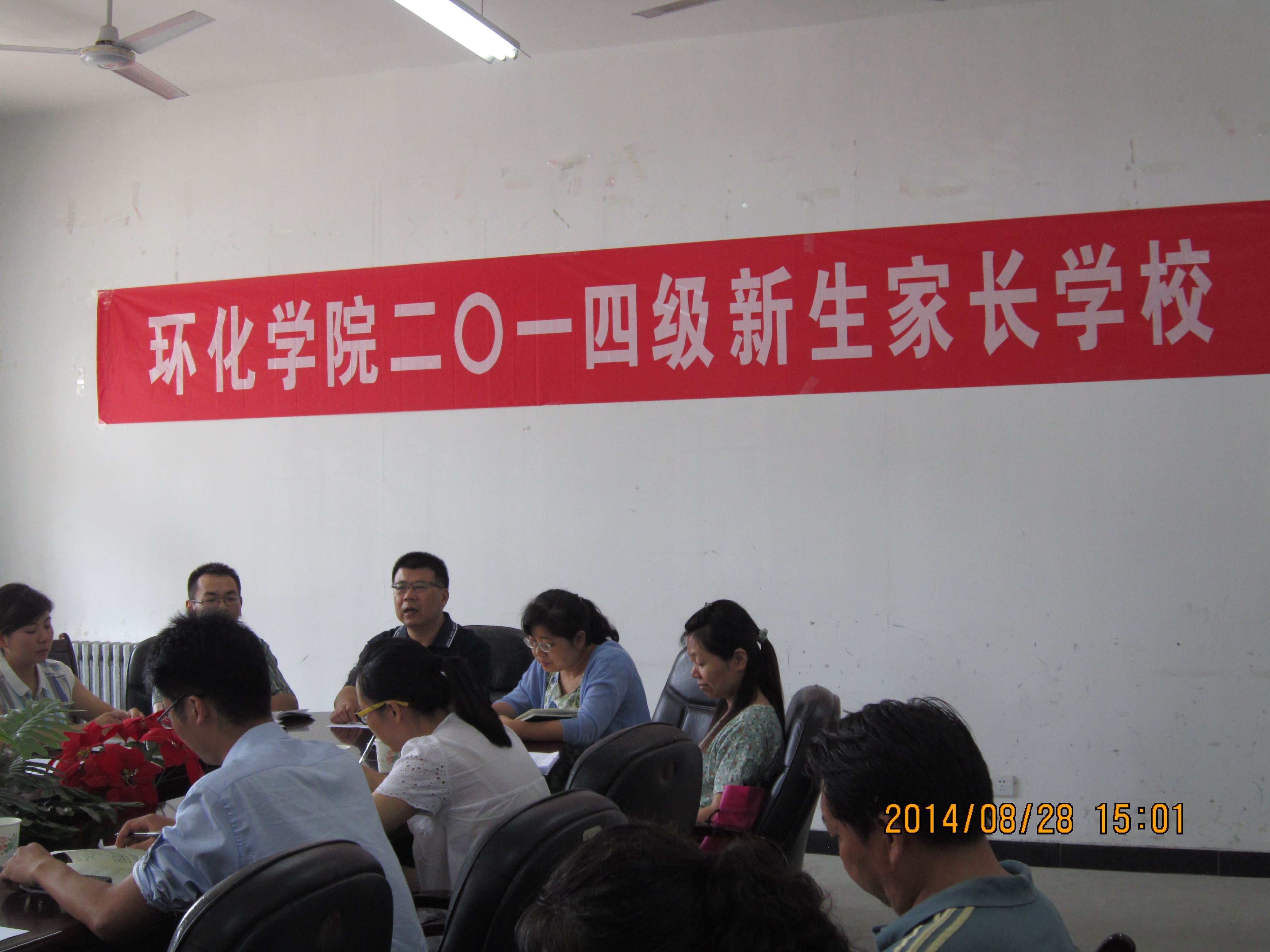 8月28日下午2时,学院在临潼校区22-8楼120会议室举办“2014级学生家长学校”,出席本次家长学校的有院党总支书记李建学、学工办副主任林定武、团总支书记李路瑶、辅导员代亚娟、张苹、陆瑞成以及部分学生家长,党总支副书记袁群主持本次家长学校。