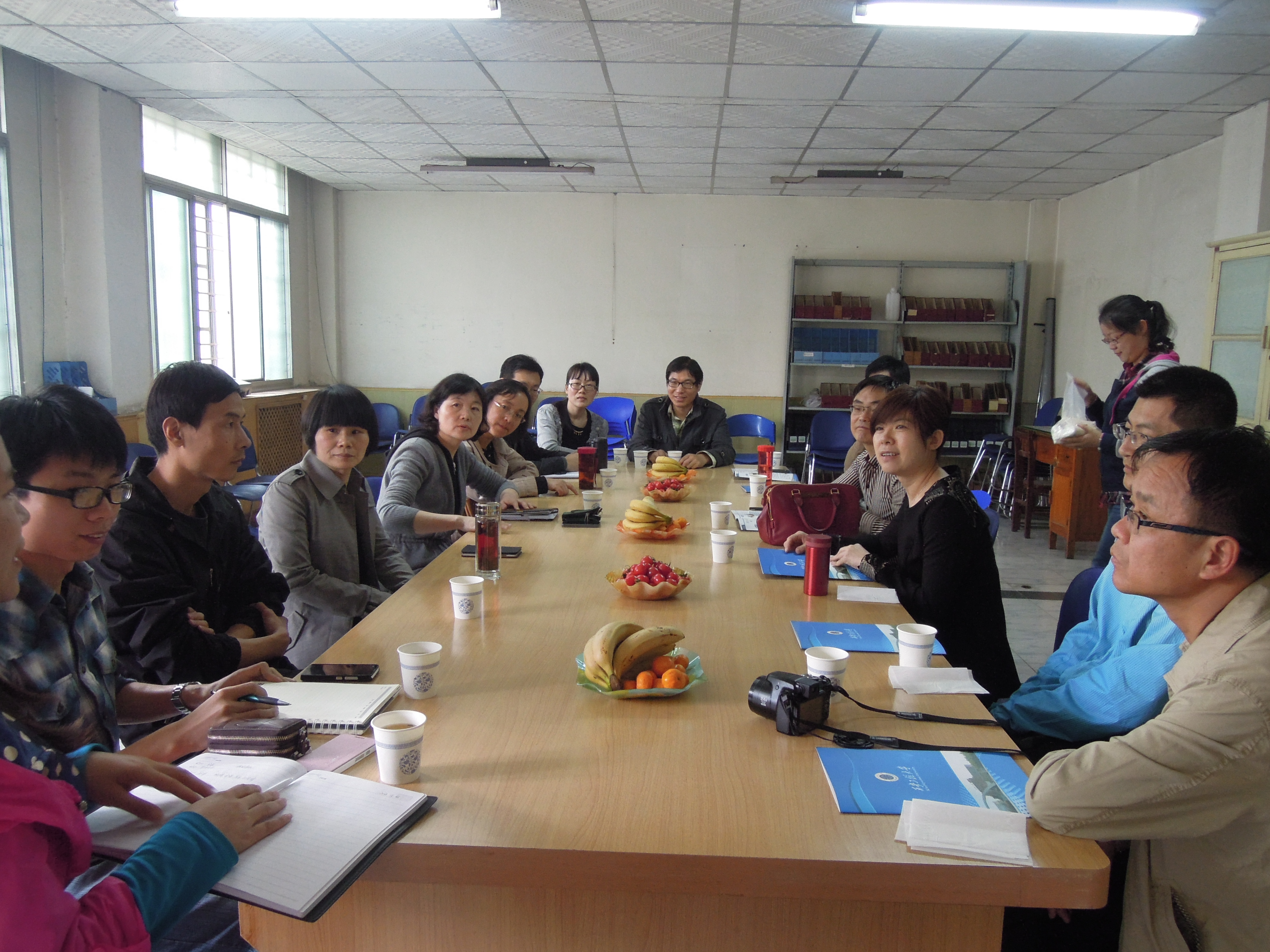 狄育慧院长介绍了我校的办学历史以及我院的基本情况,朱文庆、周飞副院长就实验室管理、实验室人员的配备、实验课的开设等方面进行交流说明。之后,双方就如何进一步开展科研合作、人才培养等问题进行了交流与探讨。座谈会结束后金院长一行参观了学院分析测试中心和部分实验室。
