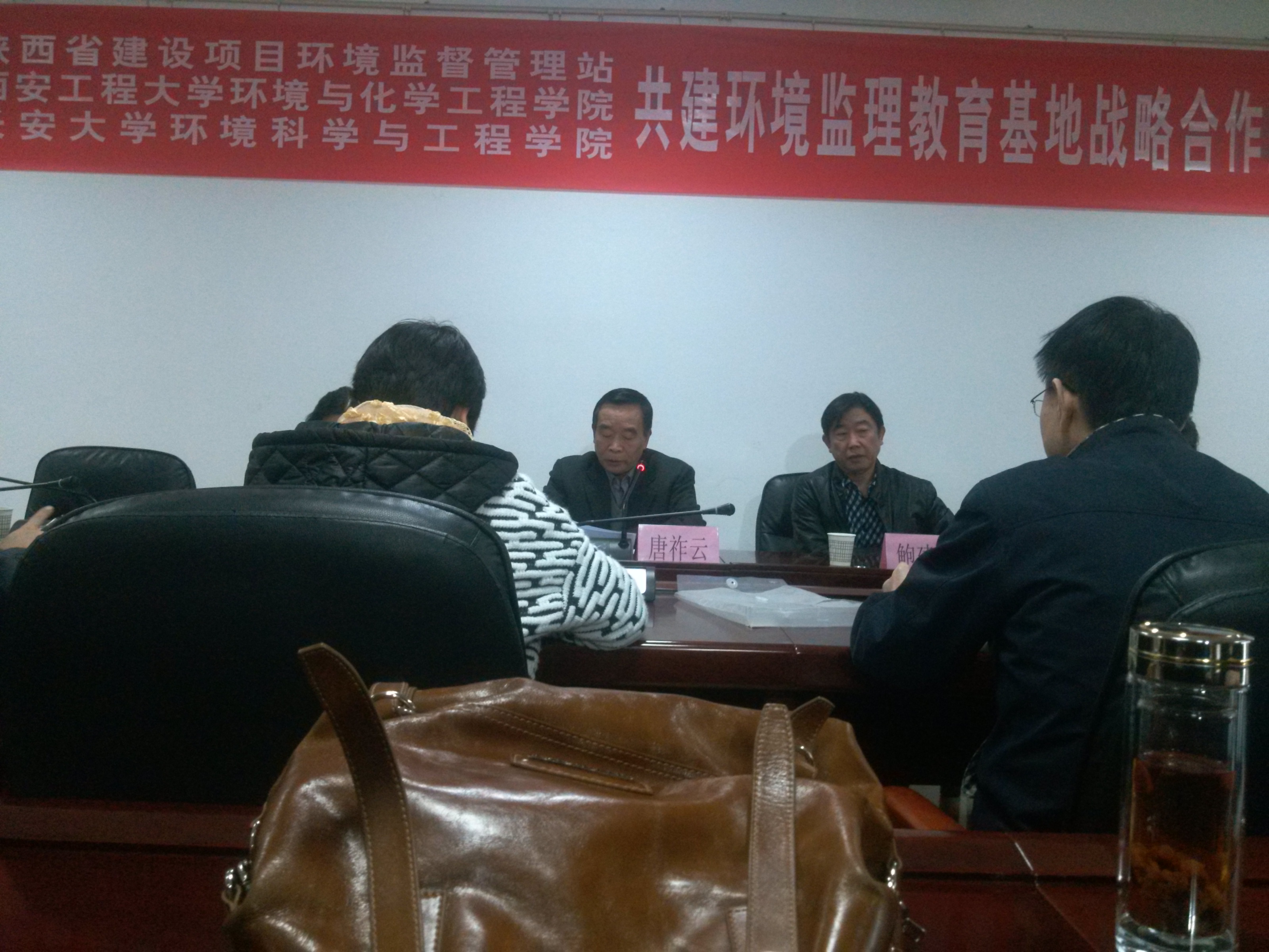 2014年3月12日上午,在陕西省环保大厦18层会议室,陕西省建设项目环境监督管理站与长安大学环境科学与工程学院、延安大学能源与环境学院和我院就加强环境监理类人才培养工作签订了战略合作协议。陕西省环保厅副巡视员唐祚云、管理站领导、签约学院领导、25家监理公司代表出席了签约仪式。