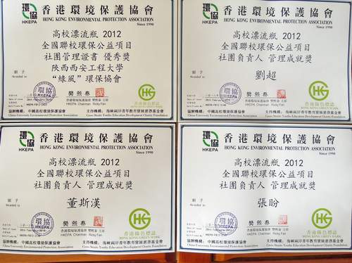 近期,我院“绿风”环保协会获得香港环境保护协会“高校漂流瓶2012全国联校环保公益项目社团管理优秀奖”,“绿风”环保协会会员董斯汉、张盼、刘超三位同学获得“高校漂流瓶2012全国联校环保公益项目社团负责管理成就奖”。