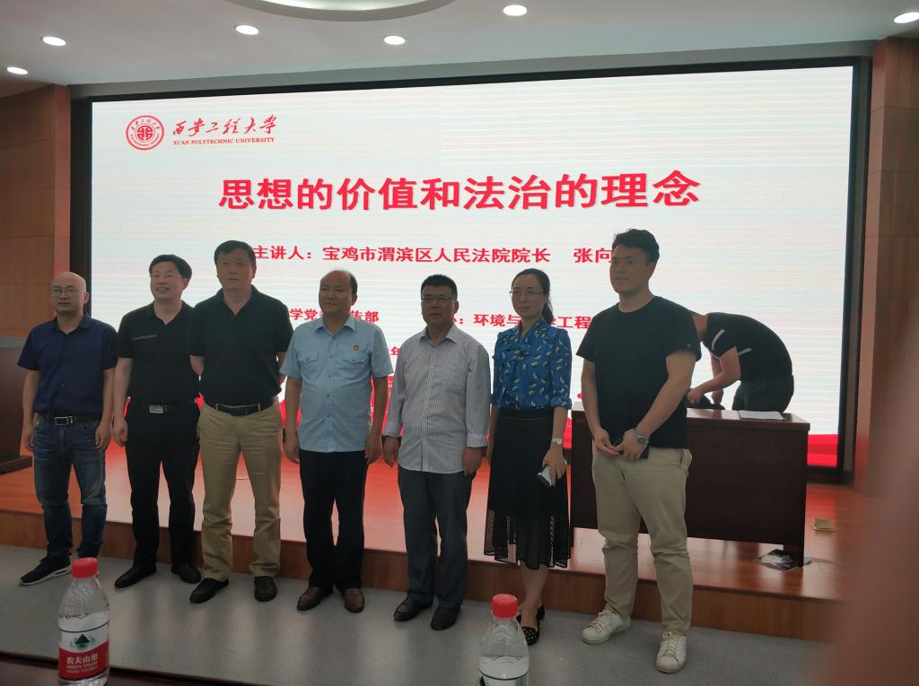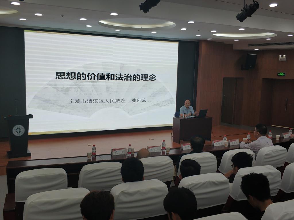 为巩固七五普法教育成果,迎接我校独立建校40周年,由党委宣传部主办,yl6809永利官网和材料工程学院承办的法制教育报告会于2018年7月5日下午四点在临潼校区图书馆一楼报告厅举行。宝鸡市渭滨区人民法院院长张向宏以“思想价值与法治理念”为题向学生做了报告。宝鸡市渭滨区人民法院政治部主任朱建文、材料学院党总支书记张茂林、党委宣传部副部长戴新、材料学院党总支副书记刘畅、yl6809永利官网辅导员贾天昱及两个学院的部分学生参加了报告会,报告会由yl6809永利官网党委书记李建学主持。