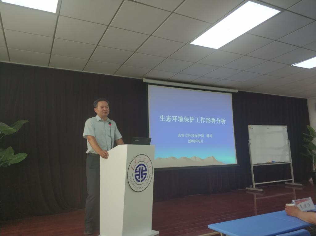 蒋涛为我校环工专业1996届毕业生,现为西安市环境保护局法规与宣教处处长。在报告会中,他通过自己在环境保护工作方面的经历分别从我国生态环境保护发展、当前生态环境保护形势、如何做一名合格的环保人三个方面为同学们做了报告。在对我国生态环境保护发展的讲解中,蒋涛以时间为轴,介绍了从建国后直至现今,我国生态环境保护发展经历了视环境污染为正常现象的“无环保”时代、环境保护要给经济发展让路的“以牺牲环境为代价发展经济”的时代、反对破坏环境的经济增长方式的 “环境保护阻碍经济发展速度”的时代、“环境保护与经济发展共赢”的时代及“环境保护为经济社会发展保驾护航”的时代。在介绍当前生态环境保护形势时,蒋涛表示,环境保护在全社会的努力已取得成效,但污染形势依然严峻,雾霾天气多发、城市河道水体黑臭、“垃圾围城”、土壤污染、危废处置以及农村环境污染等问题的突出,污染治理方面任重道远。最后,他为同学们提出了学习以及就业的建议:1、学习环保专业技术知识,同时增加期刊、网站、微信公众号的阅读与浏览;2、环保法律法规政策的学习,如宪法、刑法、环境保护基本法、单行法、相关法、法规、规章、地方性法规规章、标准、国际公约等;3、公文写作技能培养,锻炼自己写总结、汇报、通知、新闻稿件等公文的能力;4、加强体育锻炼,保持良好健康的身体状态。