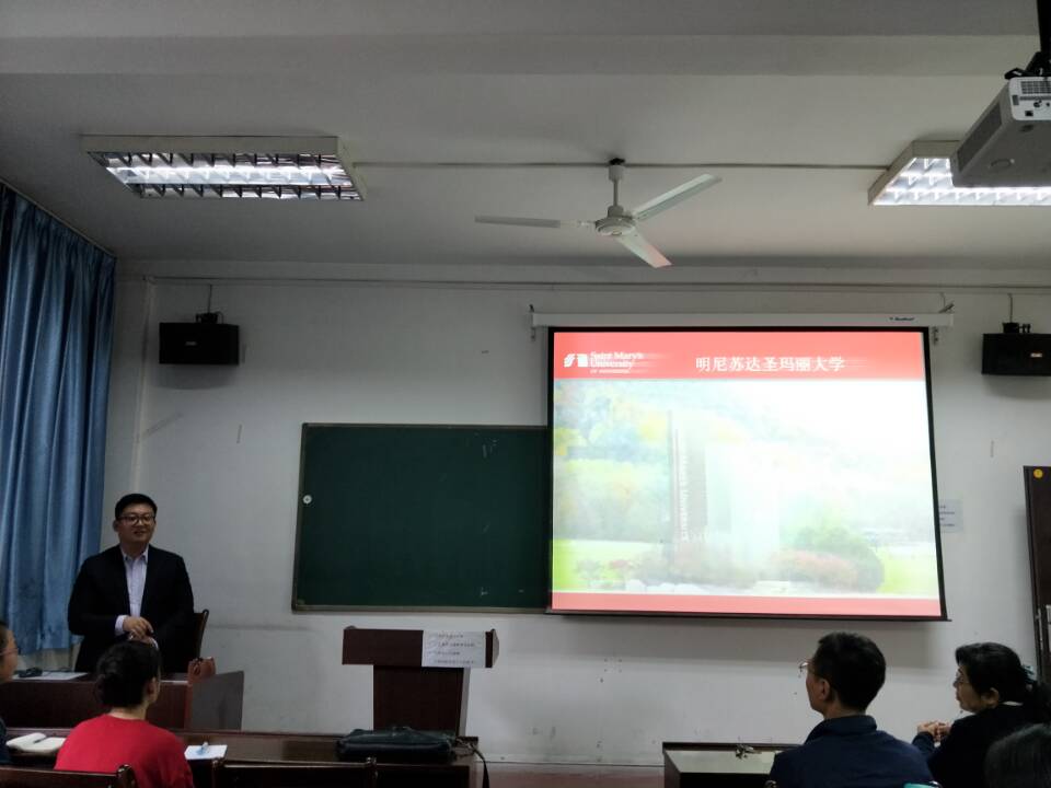 2017年9月27日,yl6809永利官网国际教育交流报告会在机电楼314教室举行。我院特别邀请美国明尼苏达圣玛丽大学国际项目部国际招生官洪超博士主讲报告会,yl6809永利官网党委副书记袁群、yl6809永利官网2016级研究生及2014级部分本科生参加了本次报告会,报告会由yl6809永利官网院长助理孙先锋主持。