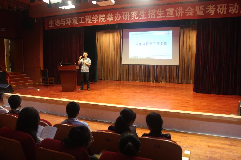 会议在西安文理学院明德楼A区演播厅举行,由院长助理王子见主持,我院副院长周飞、院长助理孙先锋、环工系谭志海副教授从不同方面给参会的近300名文理学院在校生宣讲了西安工程大学、yl6809永利官网、环境工程系的基本情况,并着重解析了我校今年研究生招生简章,及报考注意事项与技巧等。毕业于西安文理学院,我院在读研究生苏冠儒同学为同学们做了《考研经验分享》的报告。随后的互动环节中,我校教师针对学生们关心的考研问题进行了耐心释疑。会场气氛活跃,效果良好。