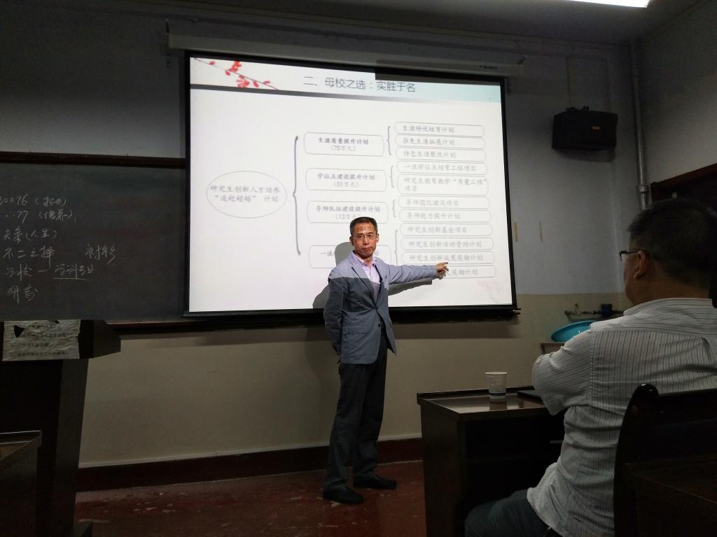 孙先锋老师从“推免”的文件精神、组织机构、工作流程、优惠政策、注意事项五个方面介绍了2018级硕士研究生“推免”工作的主要细节,他希望同学们要珍惜机会,认真对待“推免”工作。